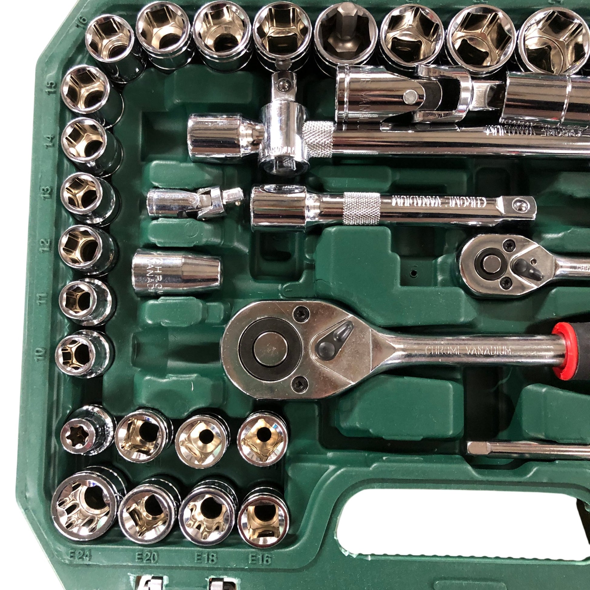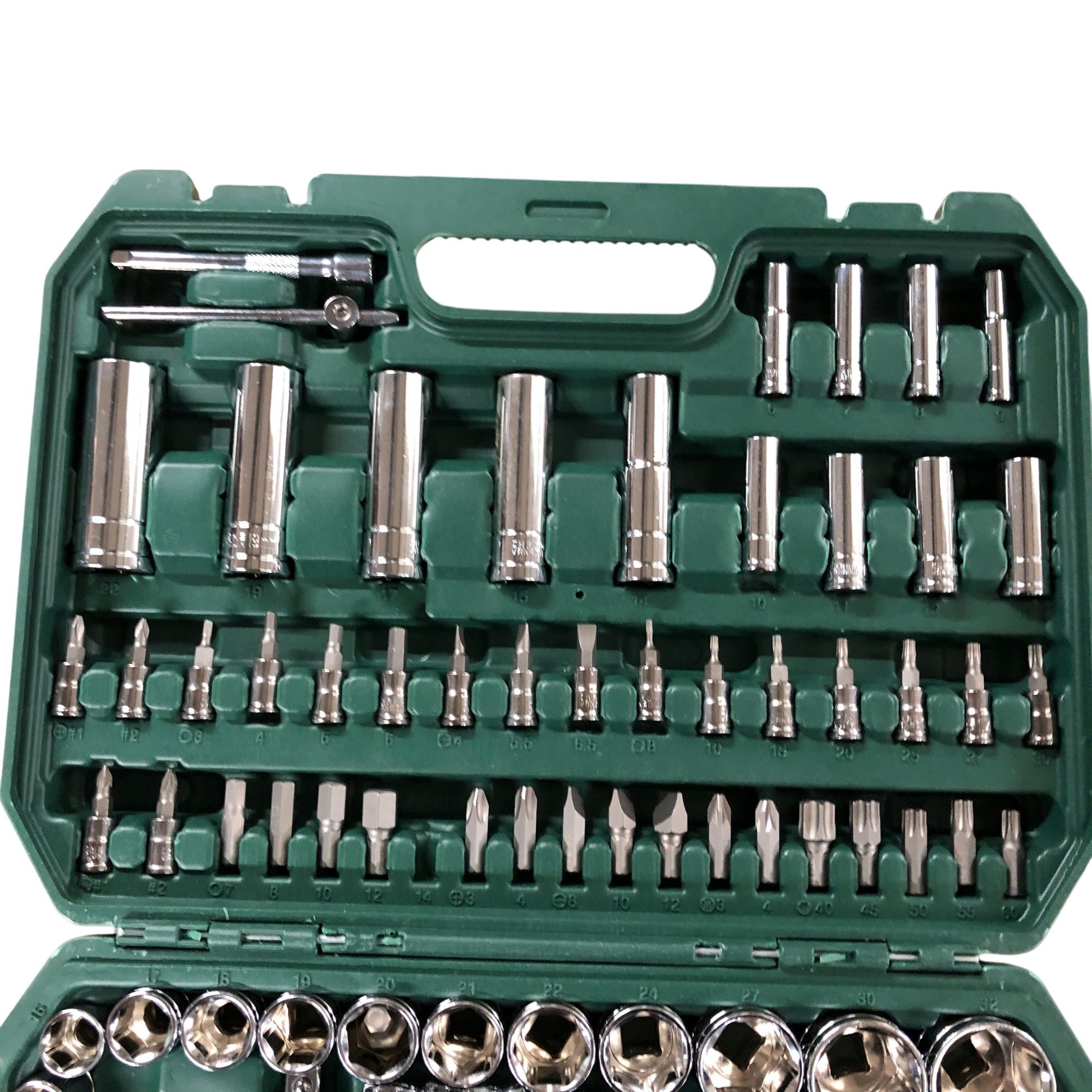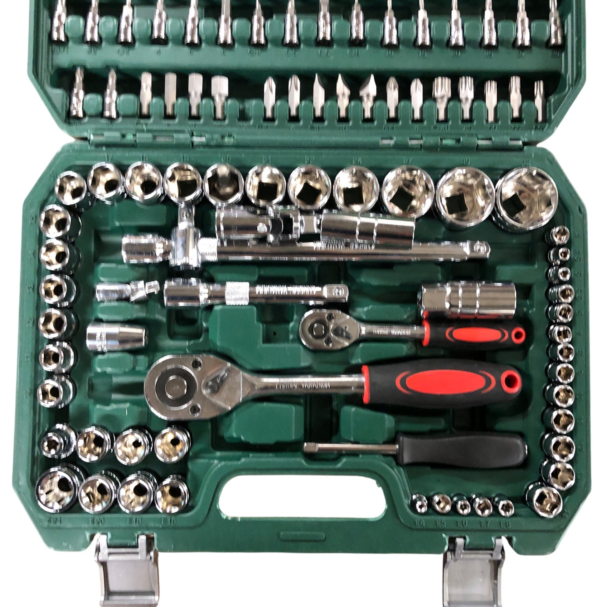 - Includes: Ratchets, extensions, bit adapters, and more