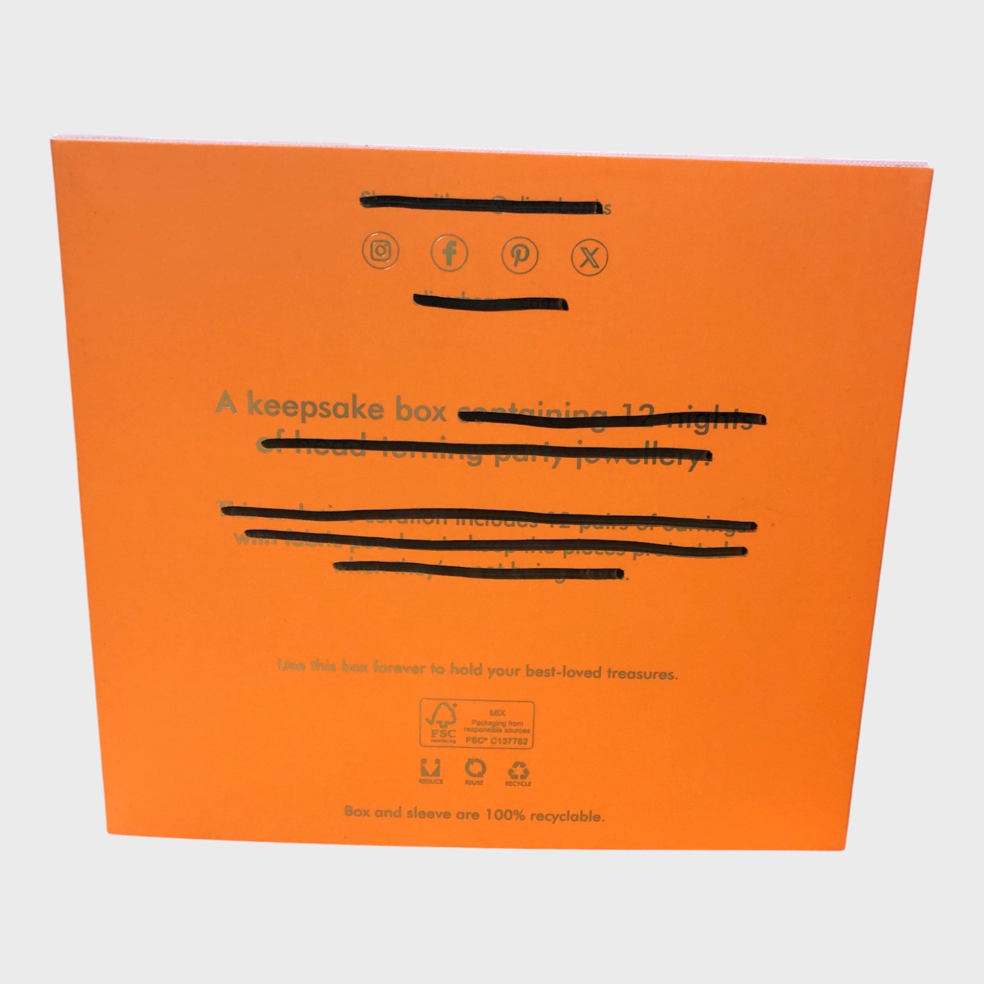 This 12-drawer advent calendar invites you to personalise the festive countdown with gifts of your choosing. Each compartment awaits your selection, making it an ideal canvas for tailored surprises. Please note that branding has been penned through on the external packaging, but this does not affect the look of the calendar once out of the packaging. Perfect for creating meaningful moments throughout the twelve days leading up to Christmas.