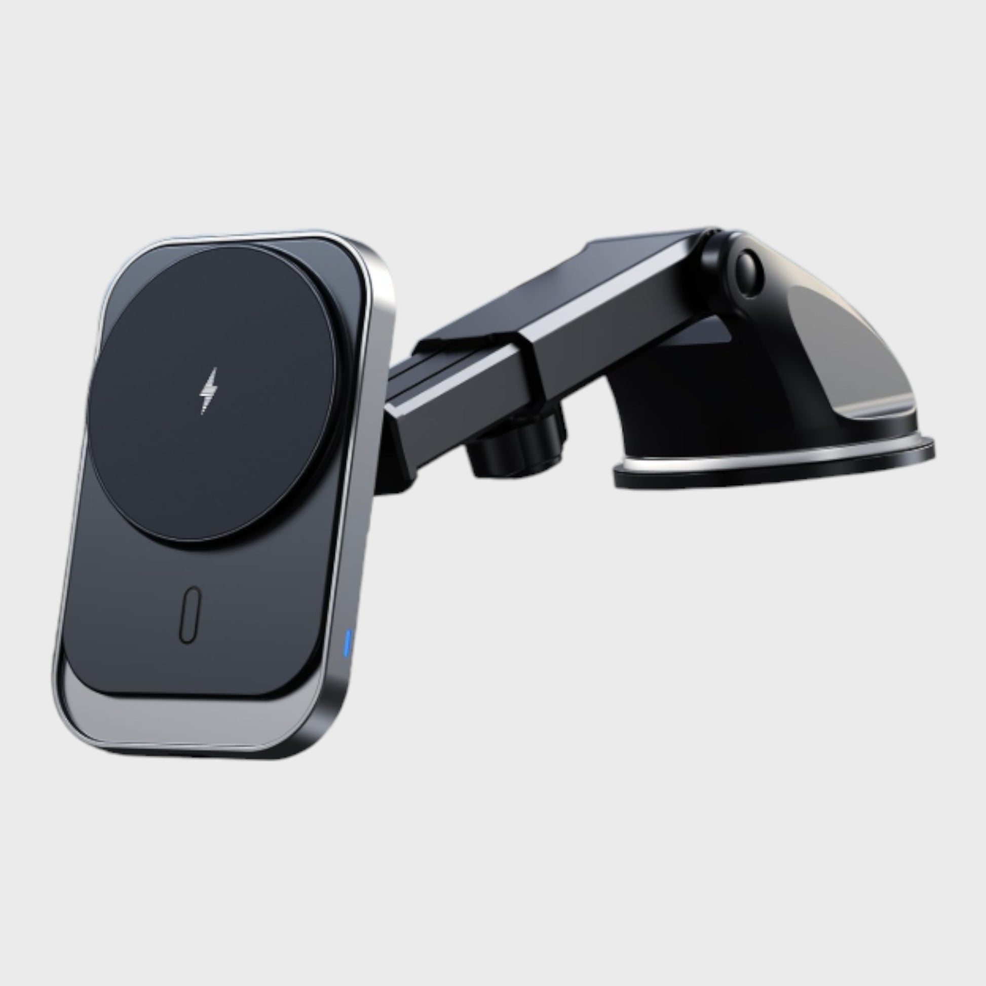 This mount features 14 N52 temperature-resistant magnets and a 2500g ultra-strong magnetic grip, making it compatible with MagSafe for fast charging. It can securely hold your phone on rough roads and bends without risk of falling. The product includes two attachments for either surface or car vent use, and is compatible with iPhone, Samsung, and Google phones. A USB C cable is also included for convenience.