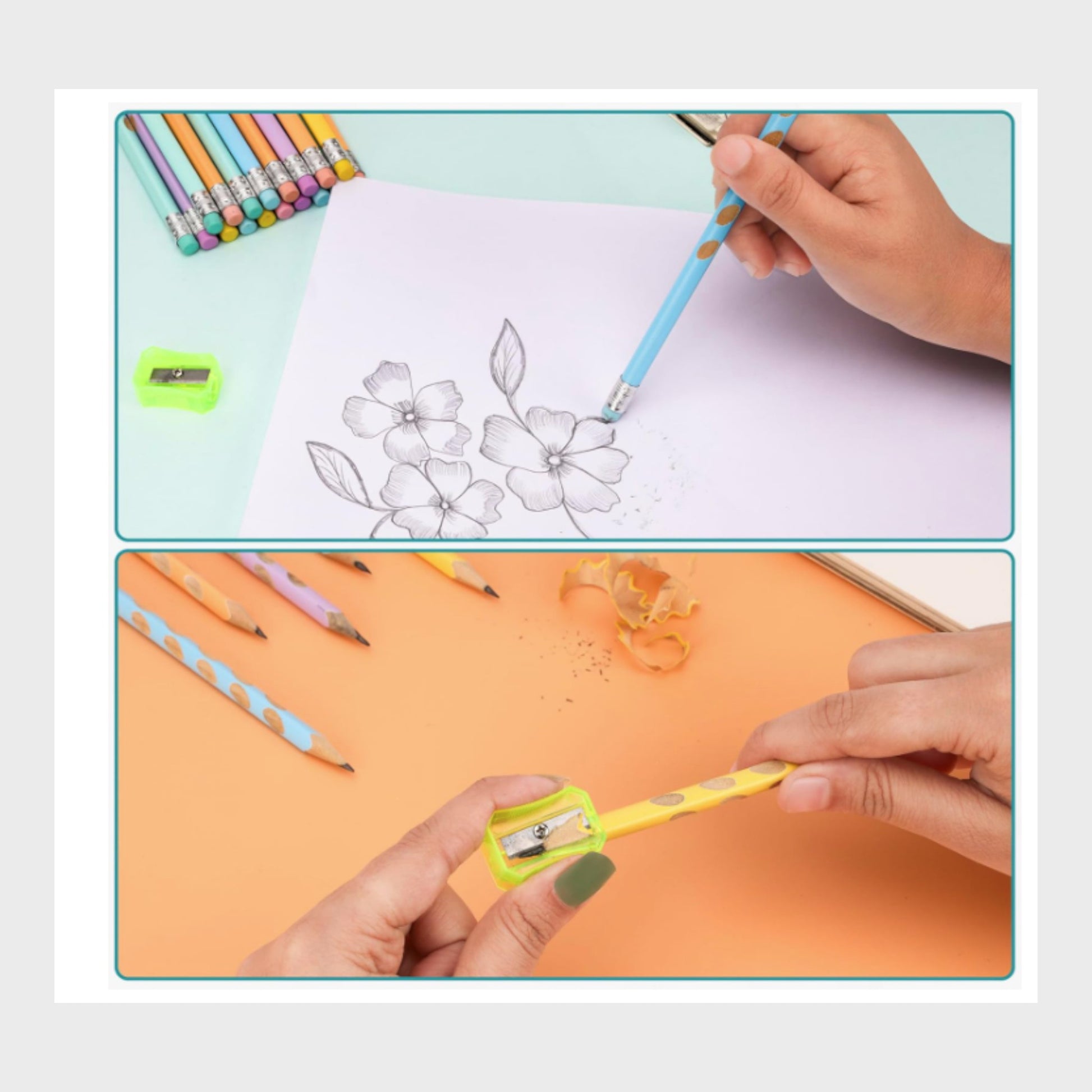 Plus, you'll get a handy storage case to keep them organised and a sharpener to keep those tips sharp and ready for action. Whether you're jotting down ideas, sketching, or tackling homework, this complete set has everything you need to keep the creativity flowing.