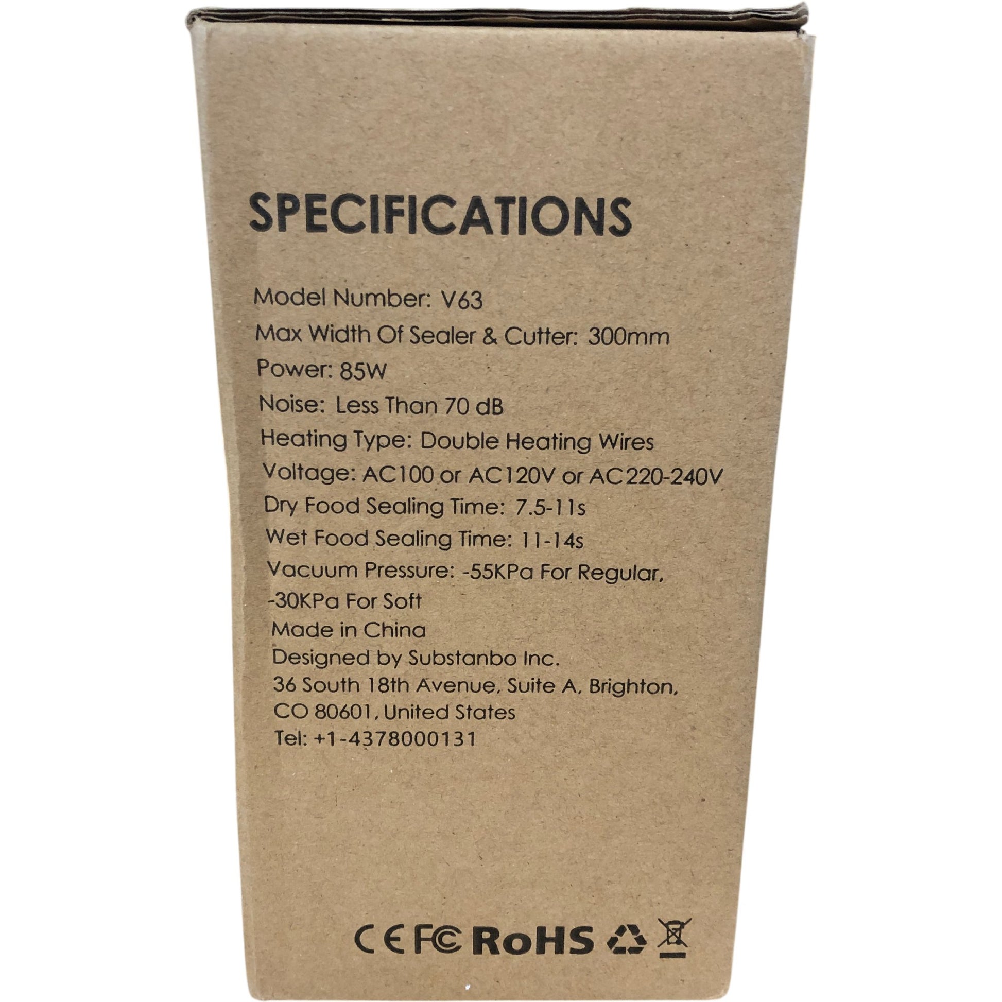 - Features: Detachable vacuum roll holder, dry and moist modes, outside cutter, power line storage compartment, detachable chamber, overheat protection