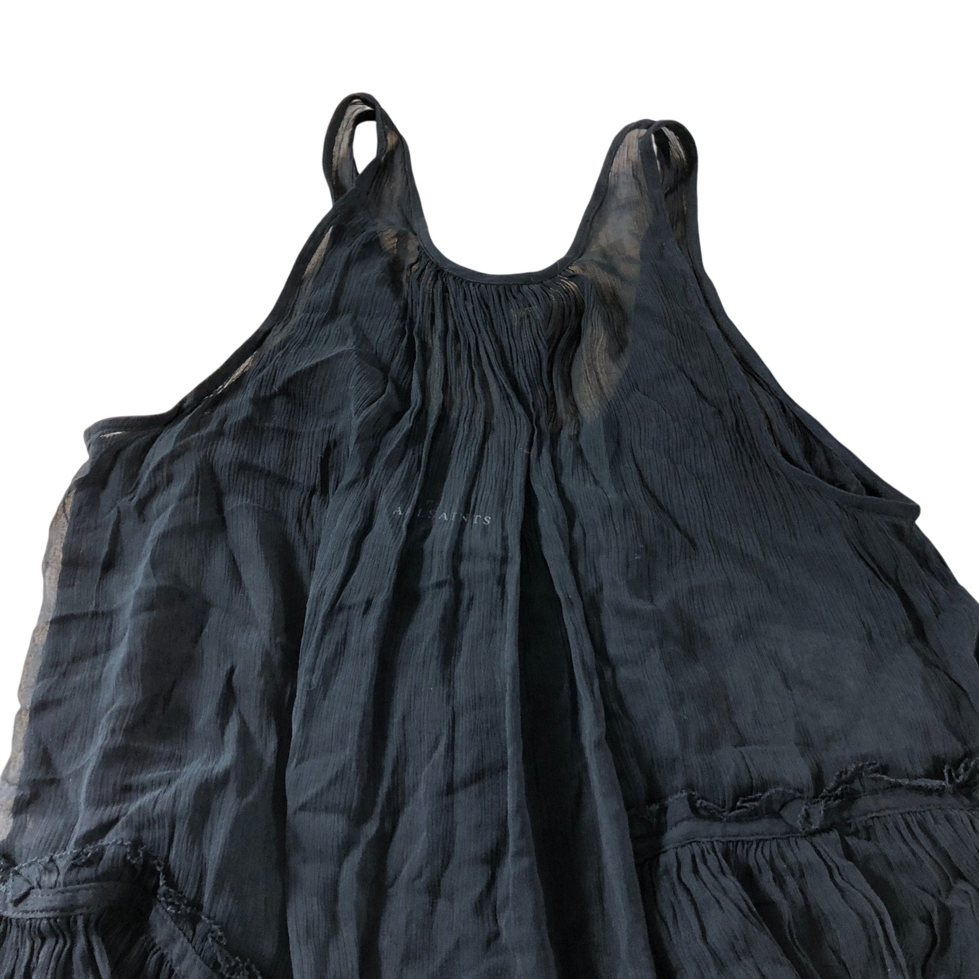 AllSaints Black Sheer Tiered Vest Top - Size 14