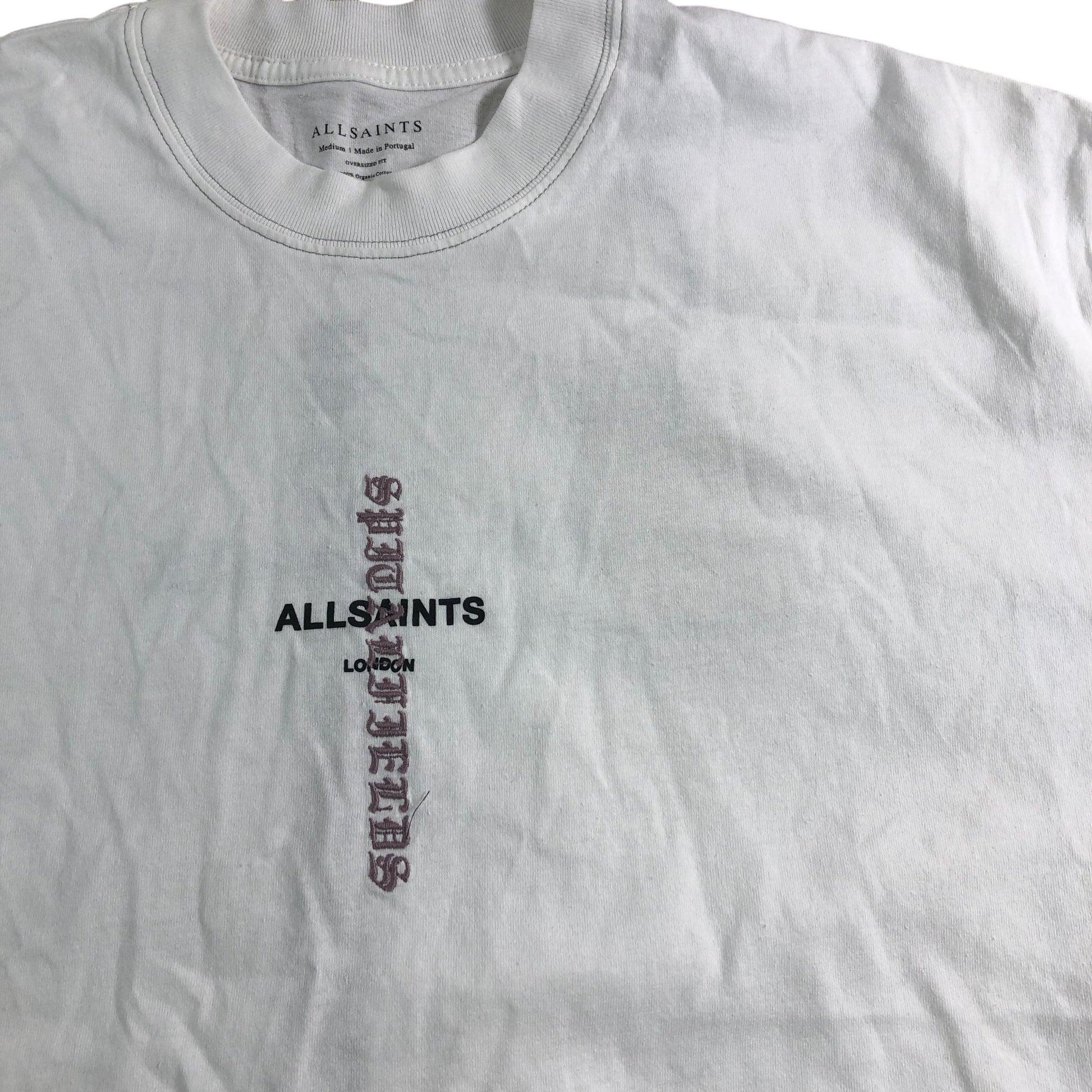 AllSaints Knox SS Crew T-Shirt M Men's White Graphic Print Oversized Fit