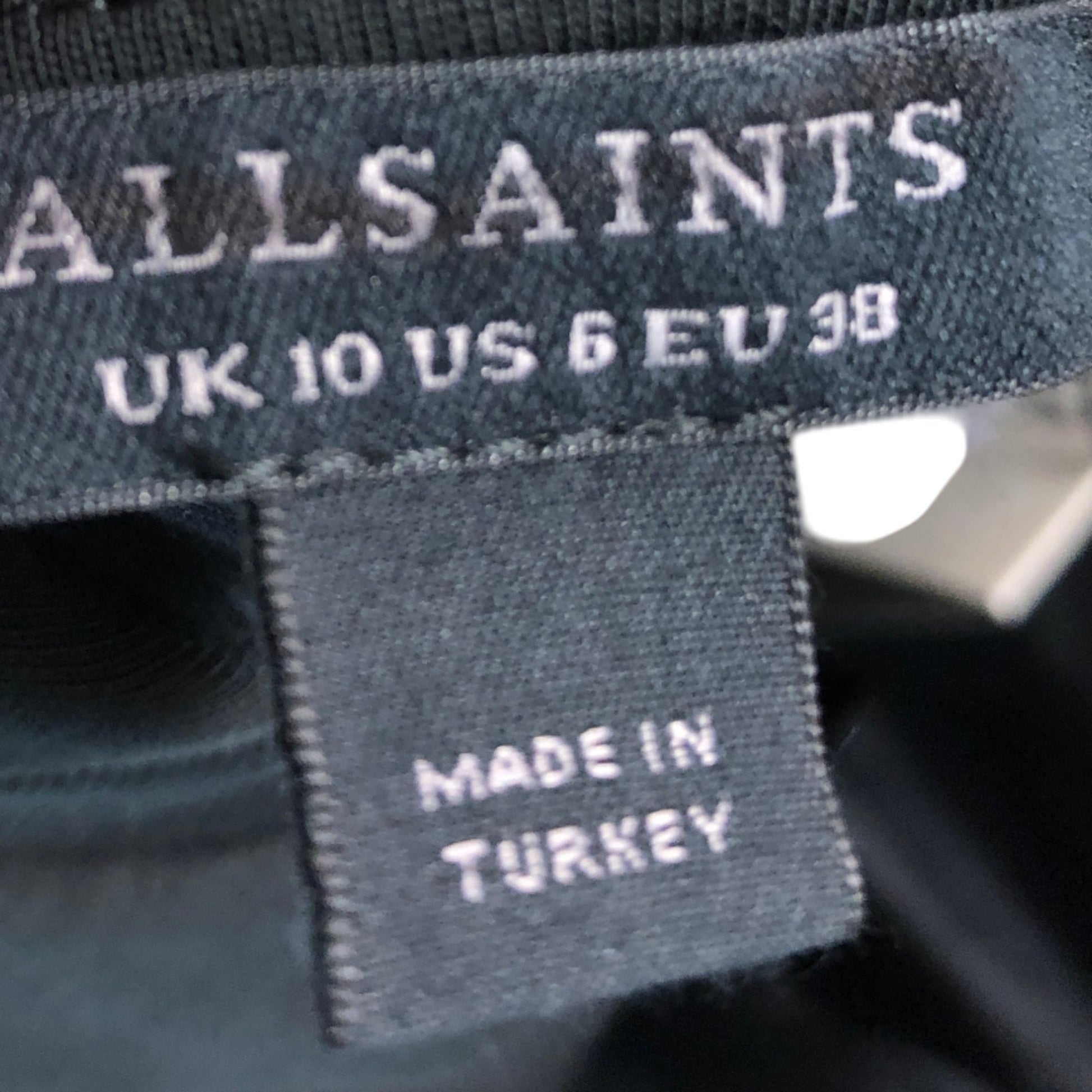 AllSaints Women's Black Midi Dress Size UK10 Elegant Flowing Design Cotton Blend
