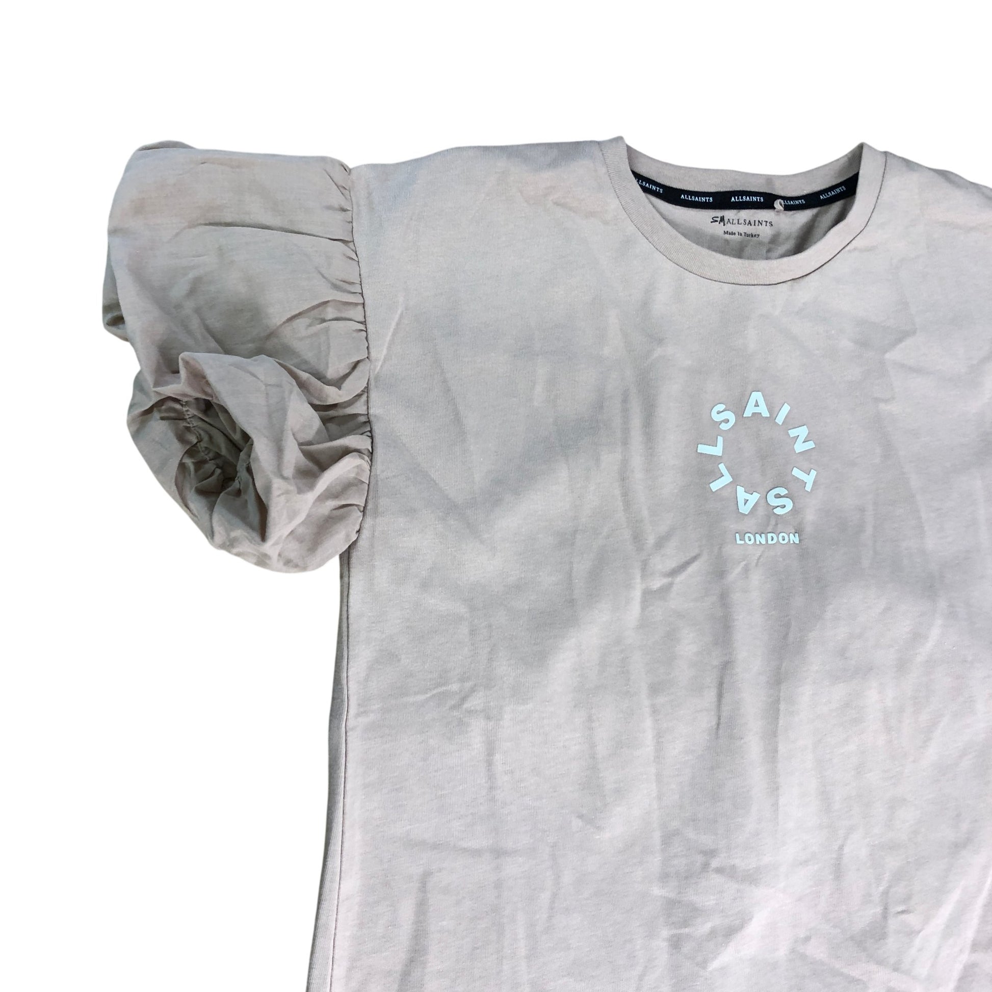 AllSaints Dress Size 12-13 Years Light Brown Cotton Short Puff Sleeves