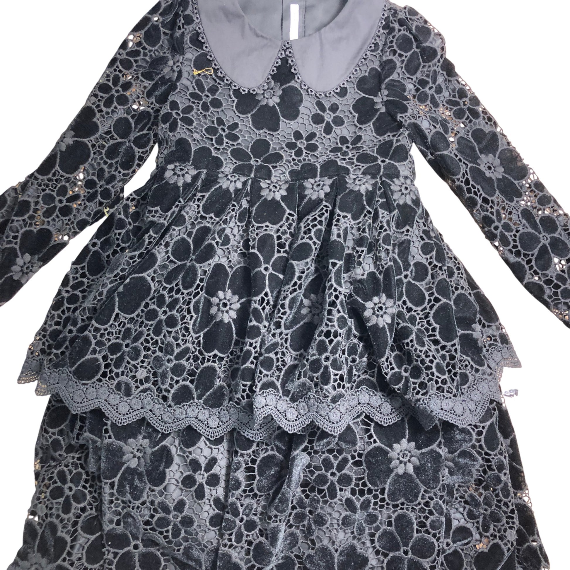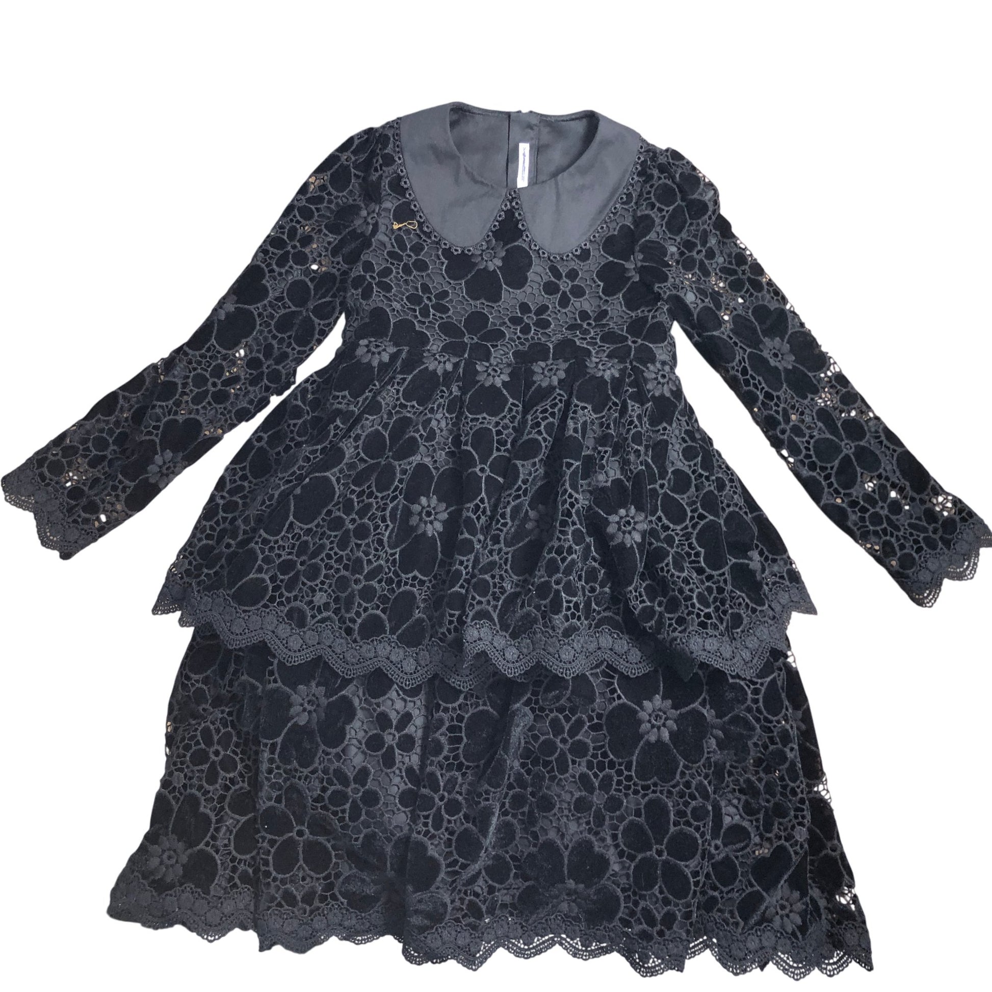 Angel & Rocket Girls Black Lace Flower Dress 10 Years Long Sleeve Elegant Outfit