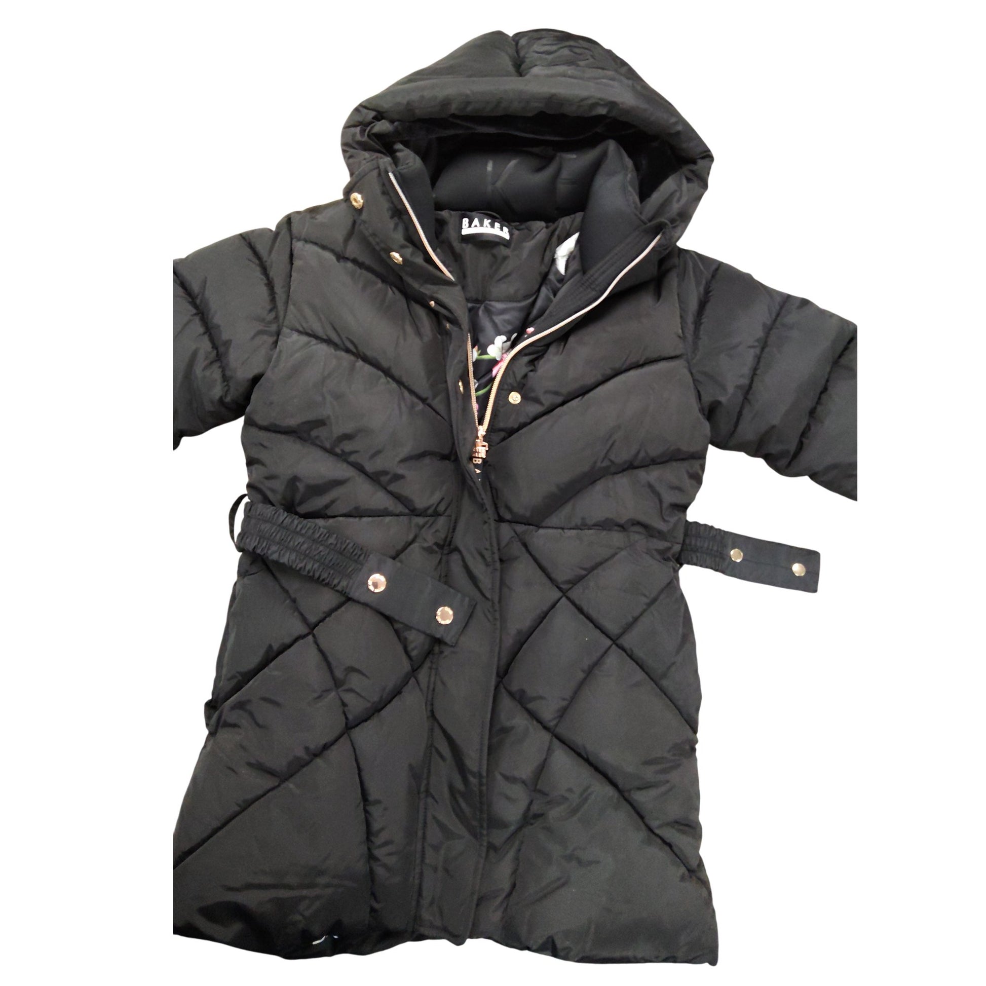 Baker By Ted Baker Girls Black Quilted Coat Size 10 Years Hooded Outerwear