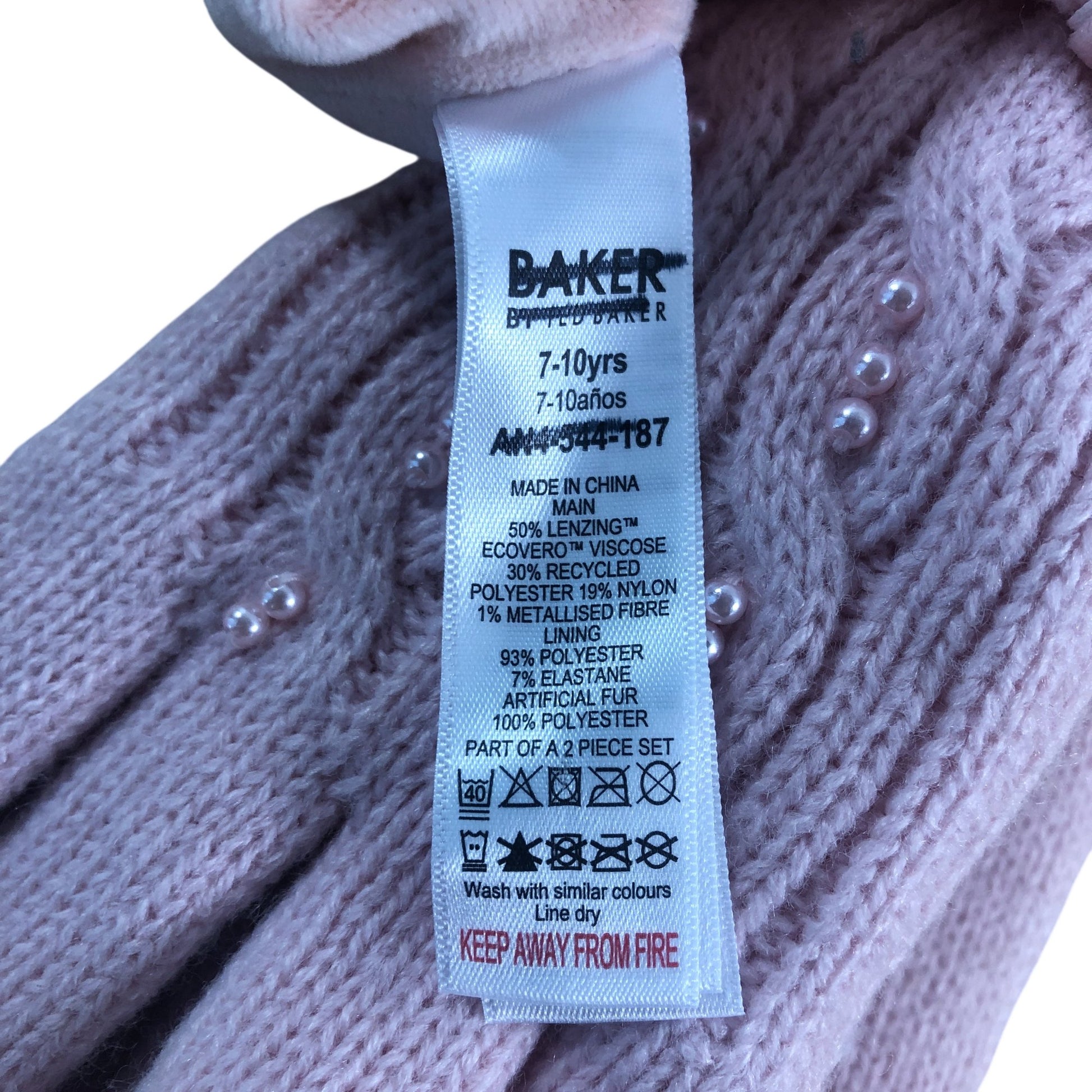 Baker By Ted Baker Girls Cable Knit Hat And Gloves Set 7-10 Years Pink