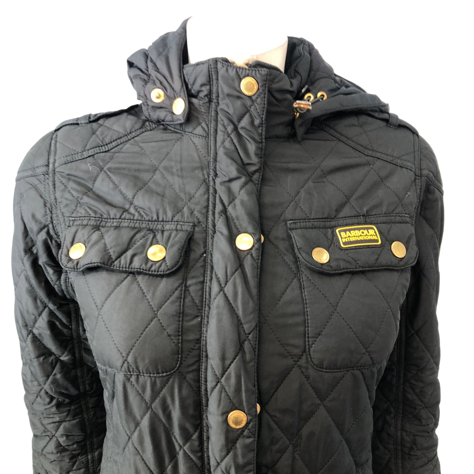 Barbour International Quilted Puffer Jacket UK10 Women's Black Hooded Outerwear