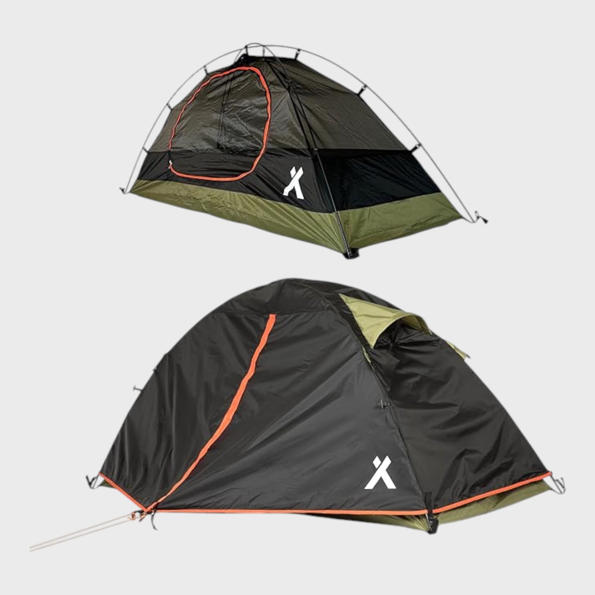 Experience ultimate camping comfort with the Bear Grylls One Person Camping Tent. Comes with waterproof PU 2000 rain fly, bathtub floor and footprint to protect from harsh weather conditions. Ultralight and compact, perfect for backpacking. Includes a footprint floor cover, aluminium stakes, gear loft, guy lines, and convenient storage bags. Versatile for 3 seasons.