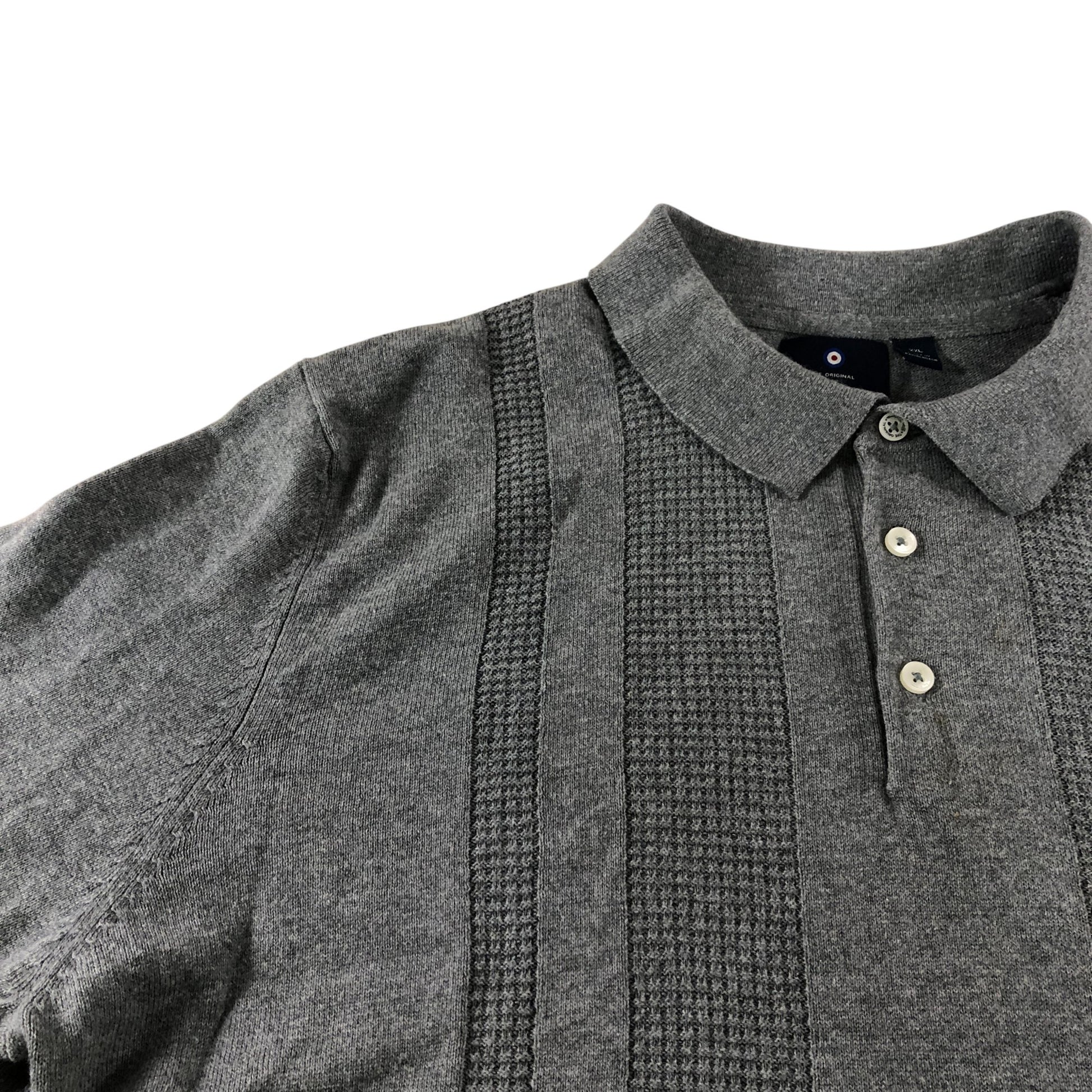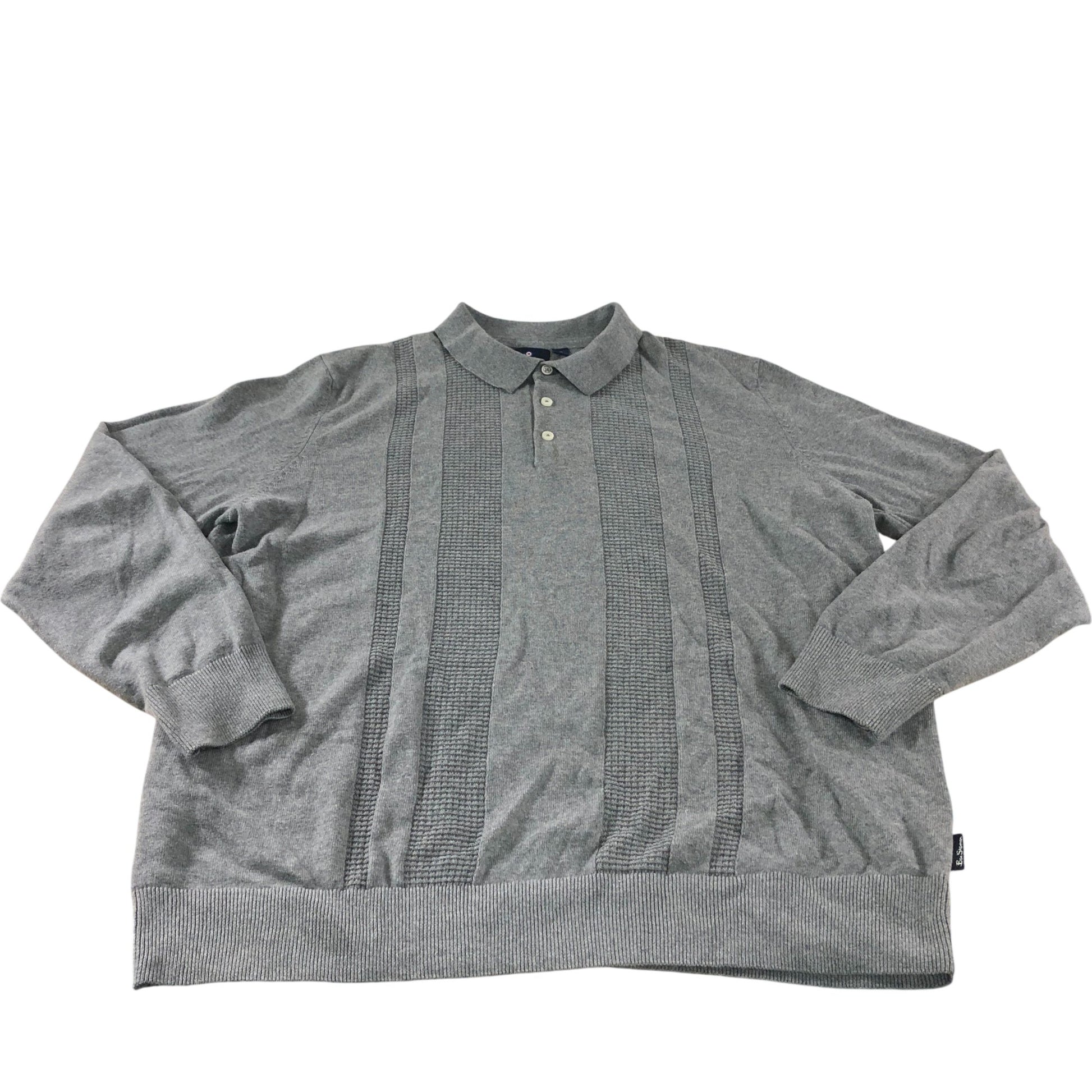 Ben Sherman Grey Textured Long Sleeve Polo Shirt - Size XXL