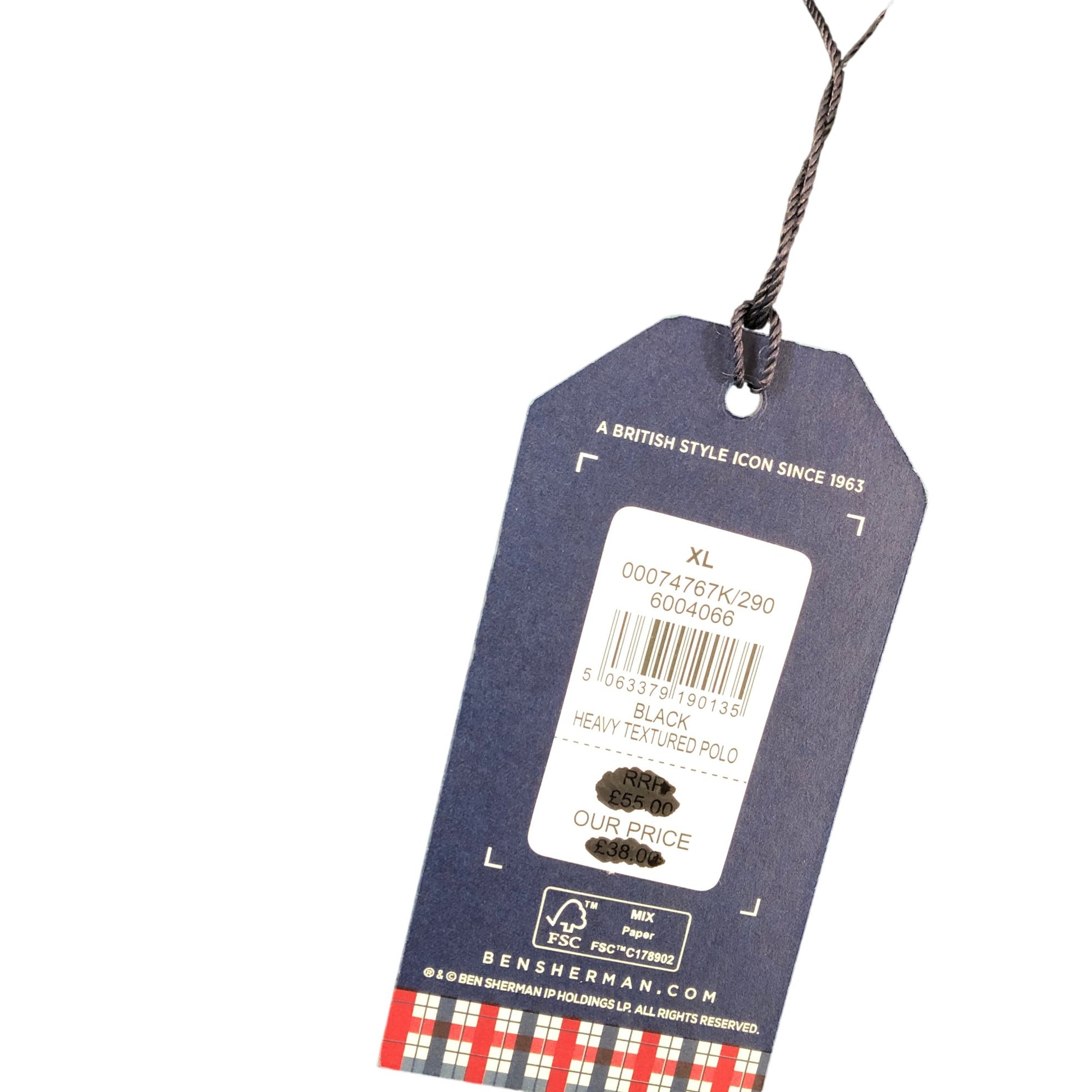 Ben Sherman XL Polo Shirt Heavy Textured Black Men's Casual Wear Stripe Trim