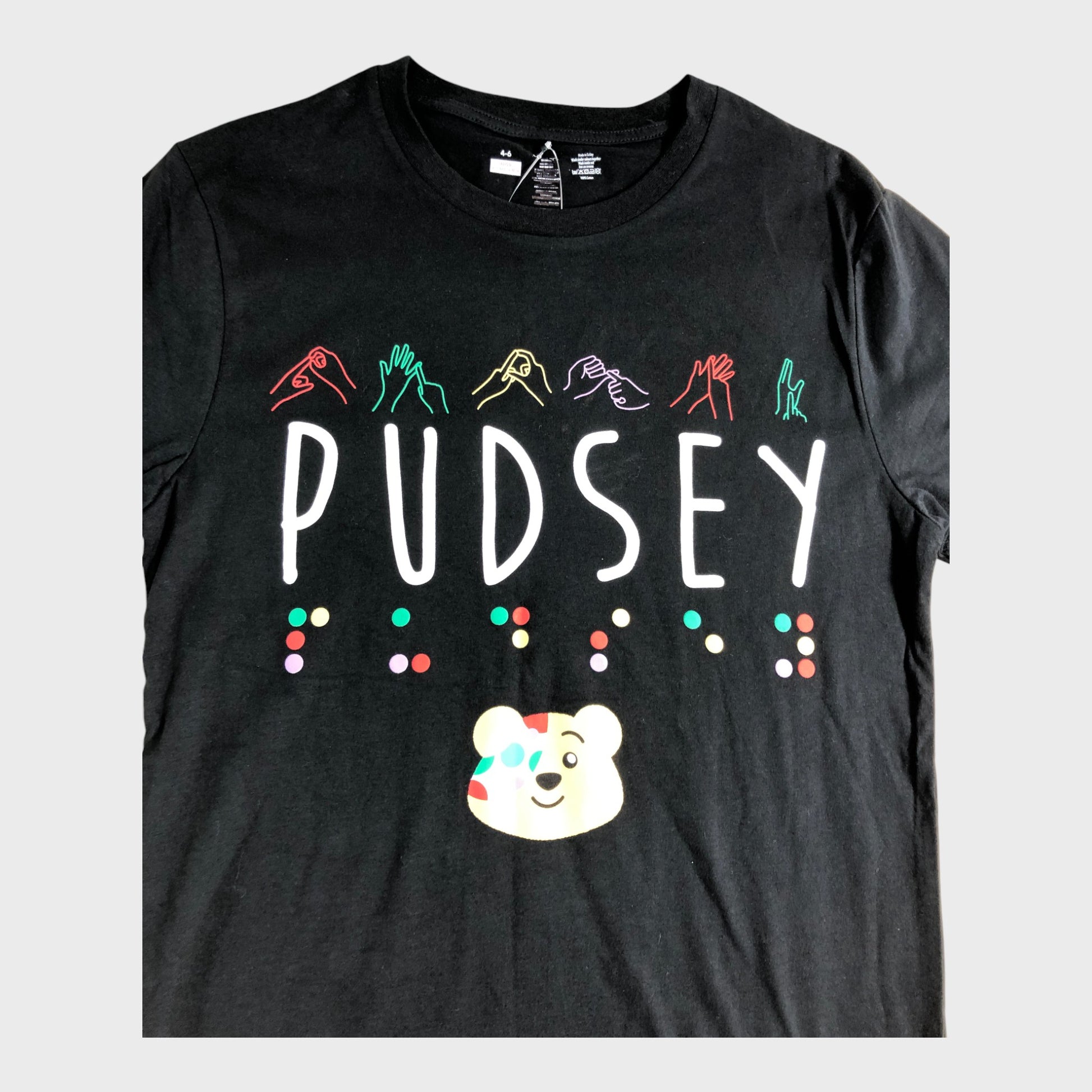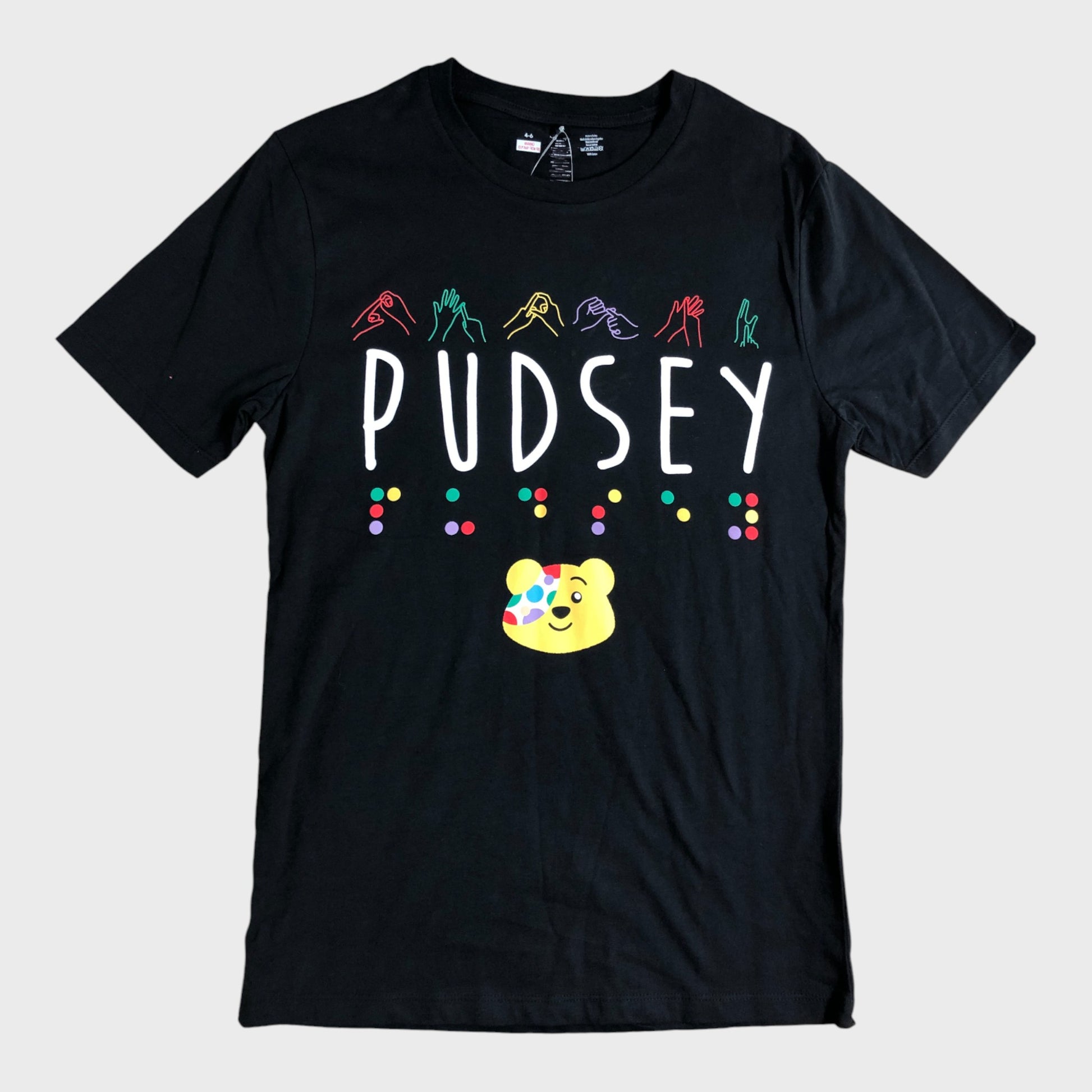 Black Pudsey Bear Sign Language T-Shirt - XS