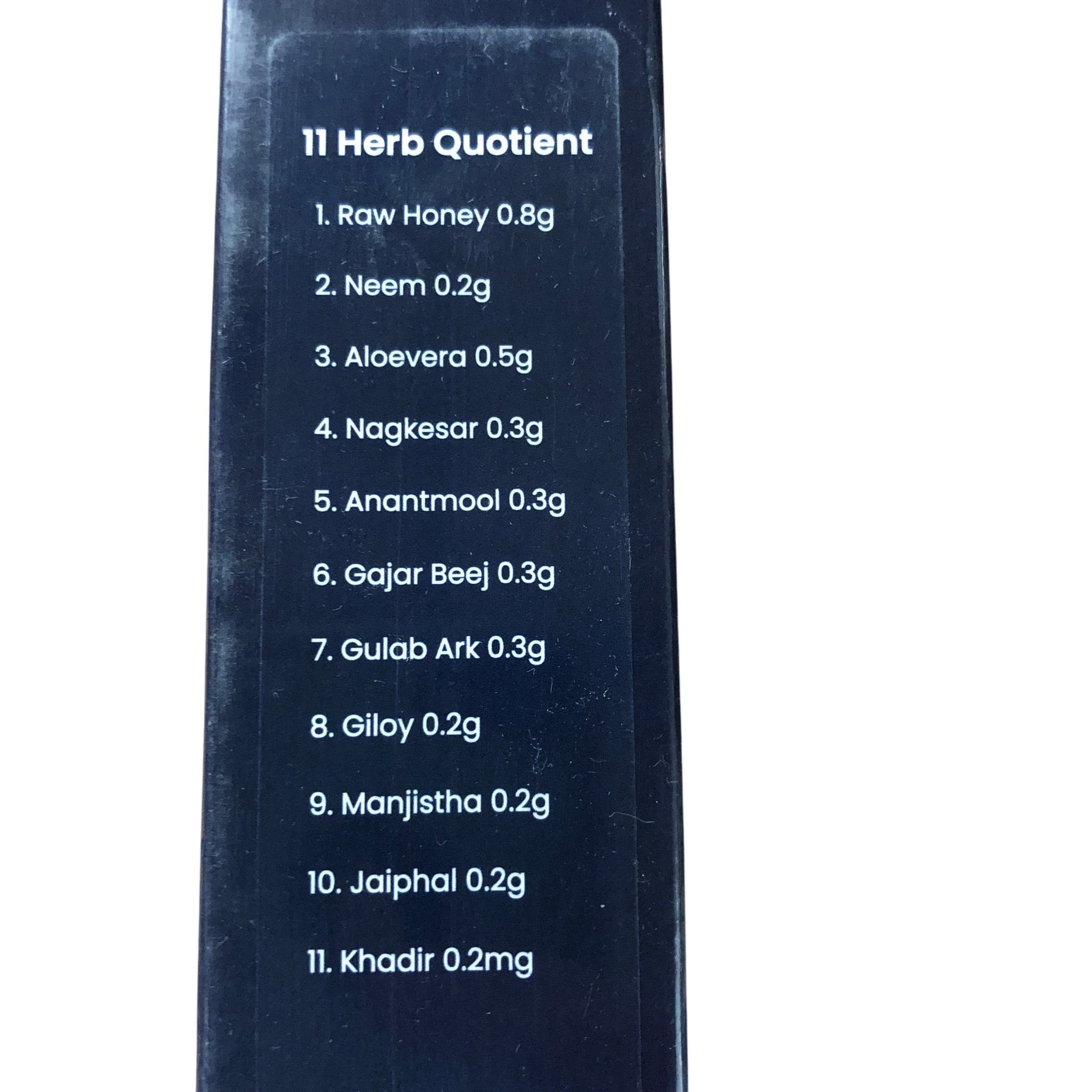 - Ingredients: Raw Honey, Neem, Aloevera, Nagkesar, Anantmool, Gajar Beej, Gulab Ark, Giloy, Manjistha, Jaiphal, Khadir