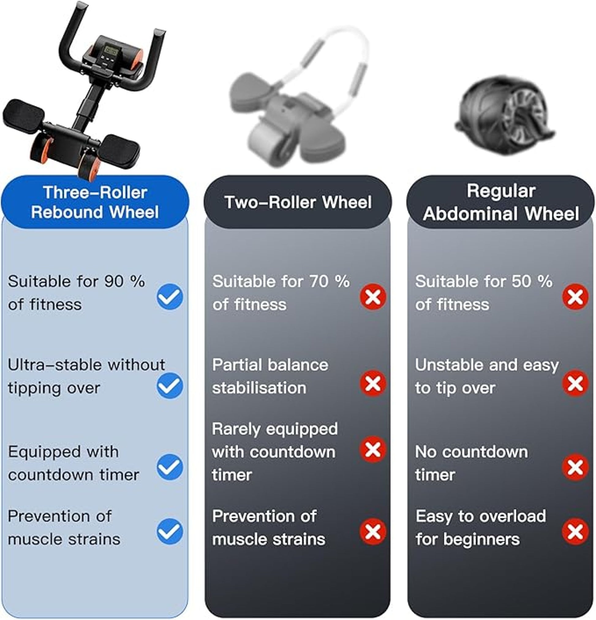 • Wheels: Three-wheel design