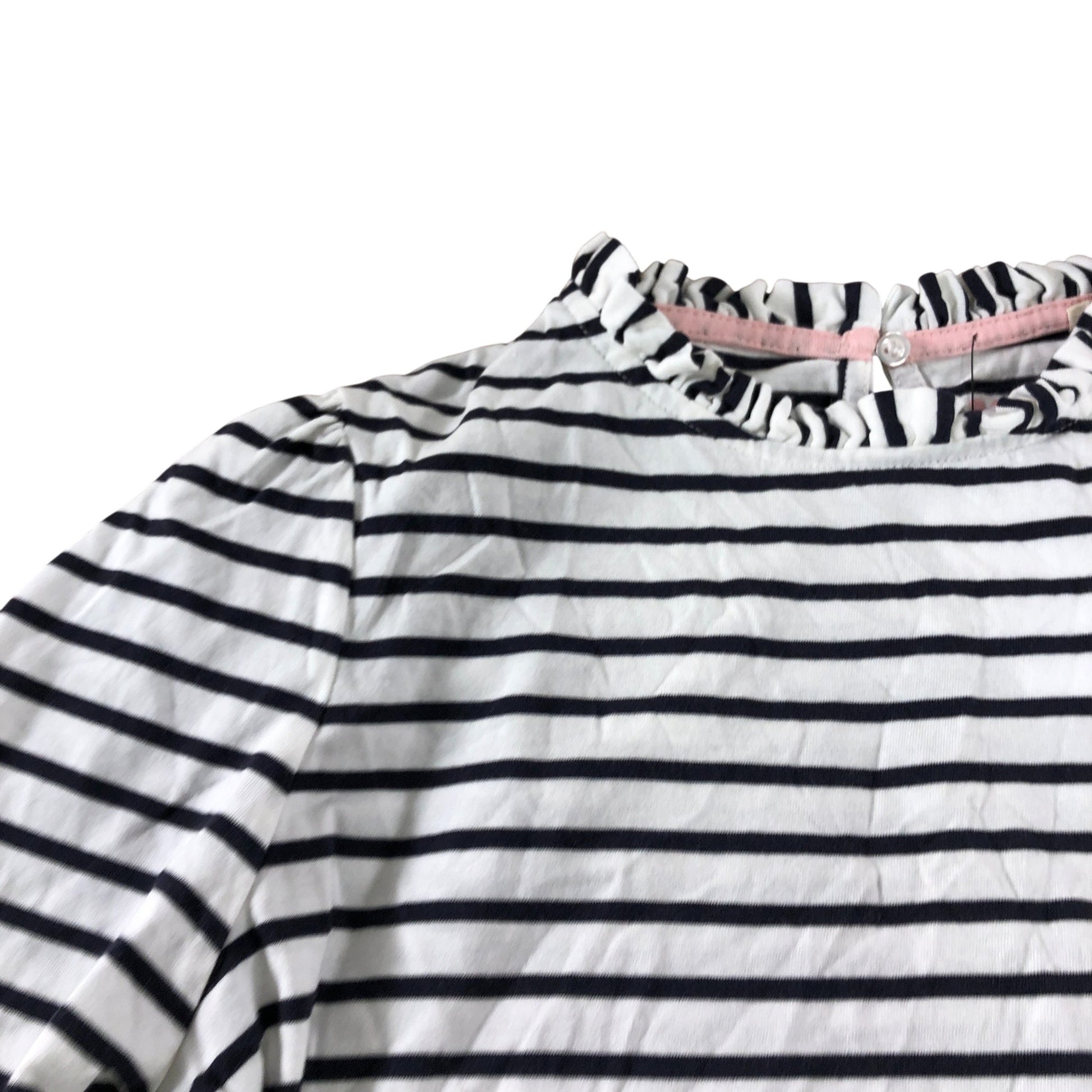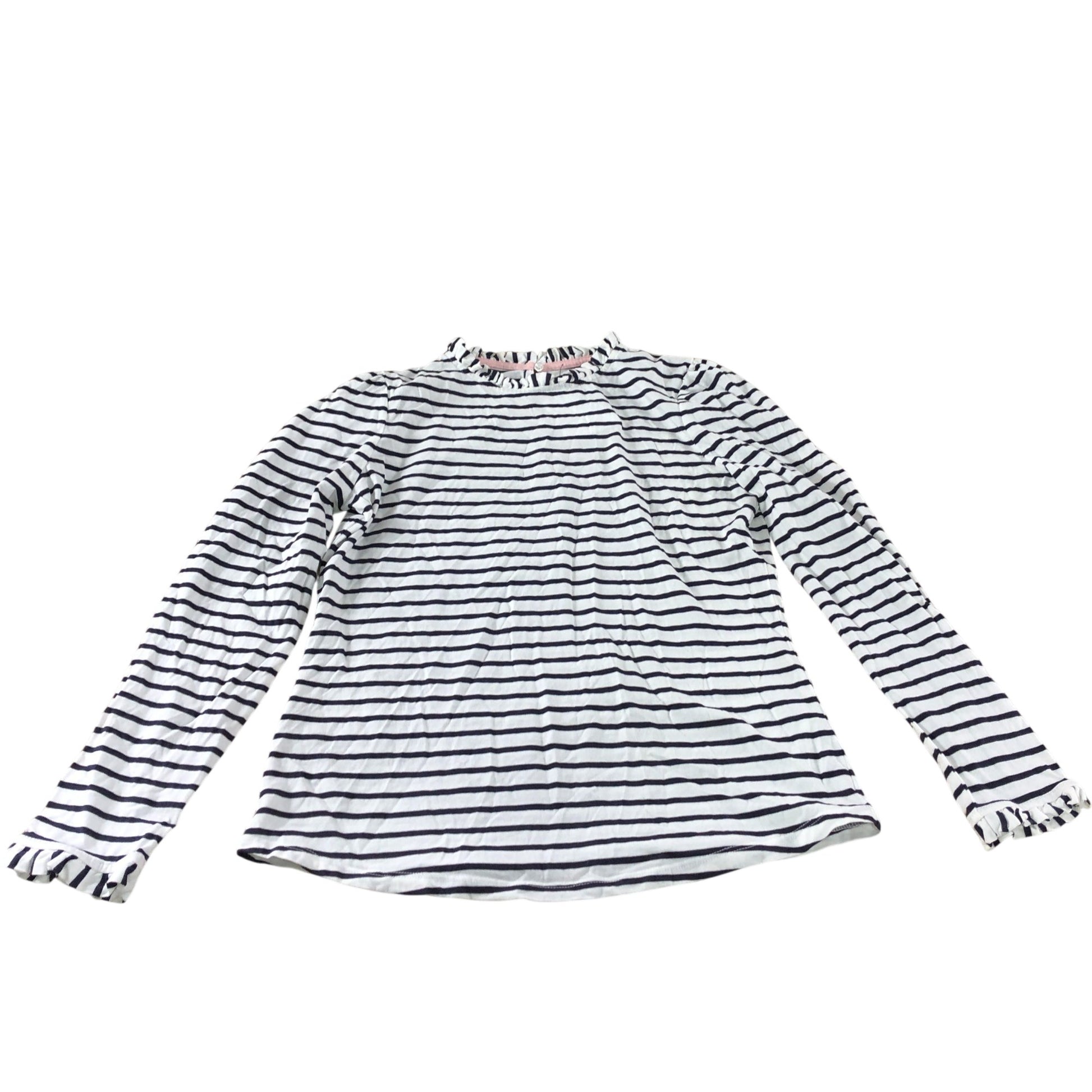 Boden White/Navy Striped Frill Detail Long Sleeve Top - Size 10