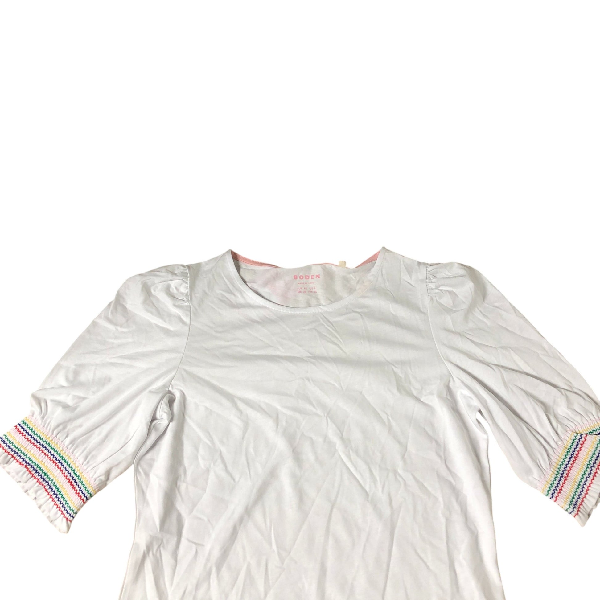 Boden White Top Women's Short Sleeve Cotton Blend Puff Sleeve UK10