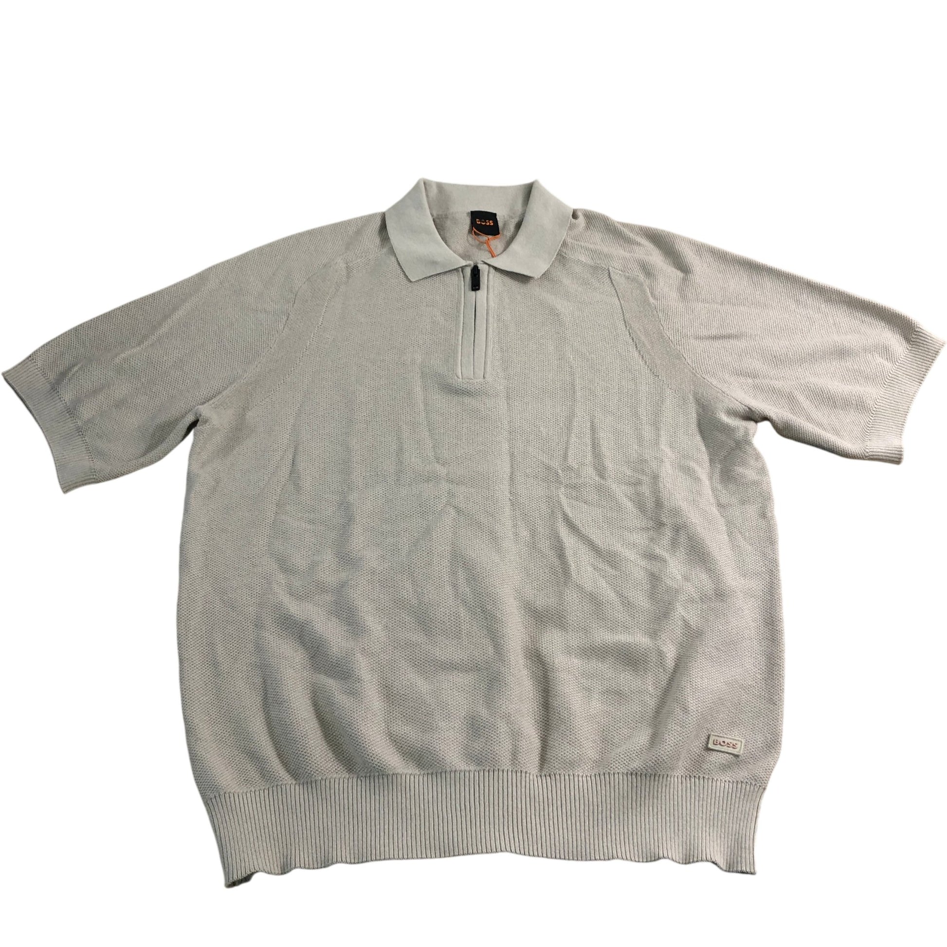 Boss Men’s Short Sleeve Polo Shirt M Zip Neck Knit Top Light Grey Size M