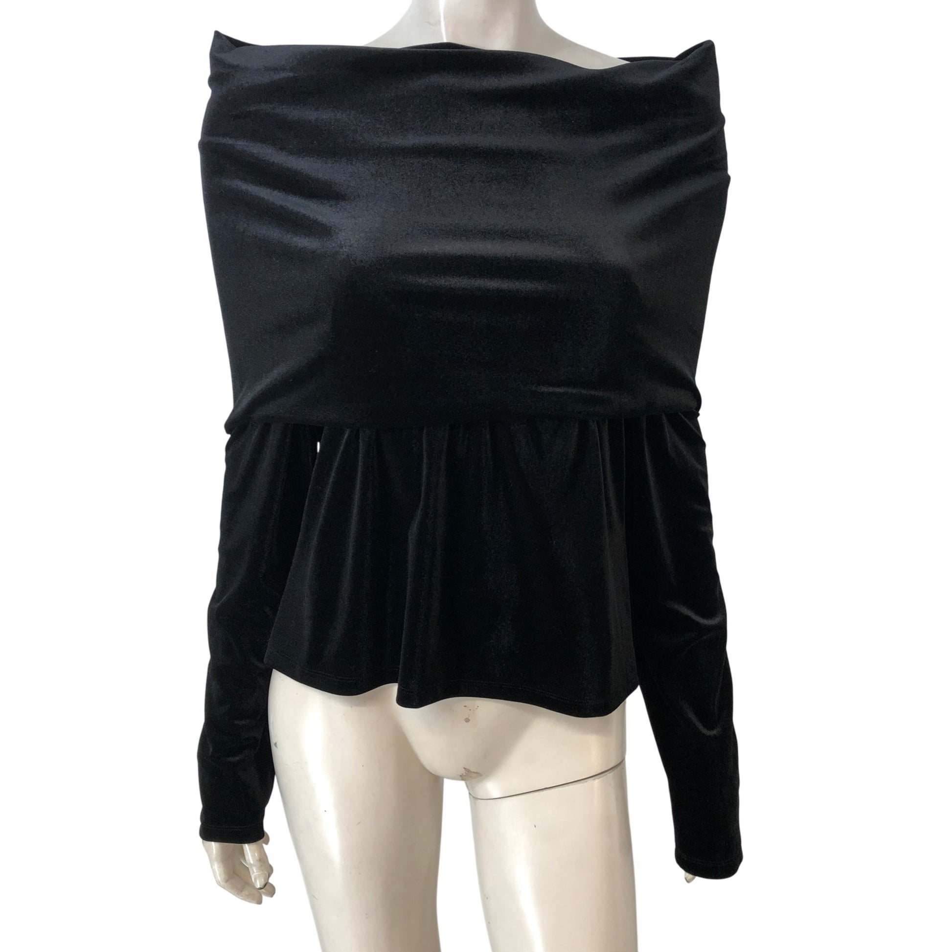 Branded Bardot Top 12 Women's Black Velvet Long Sleeve Party Wear