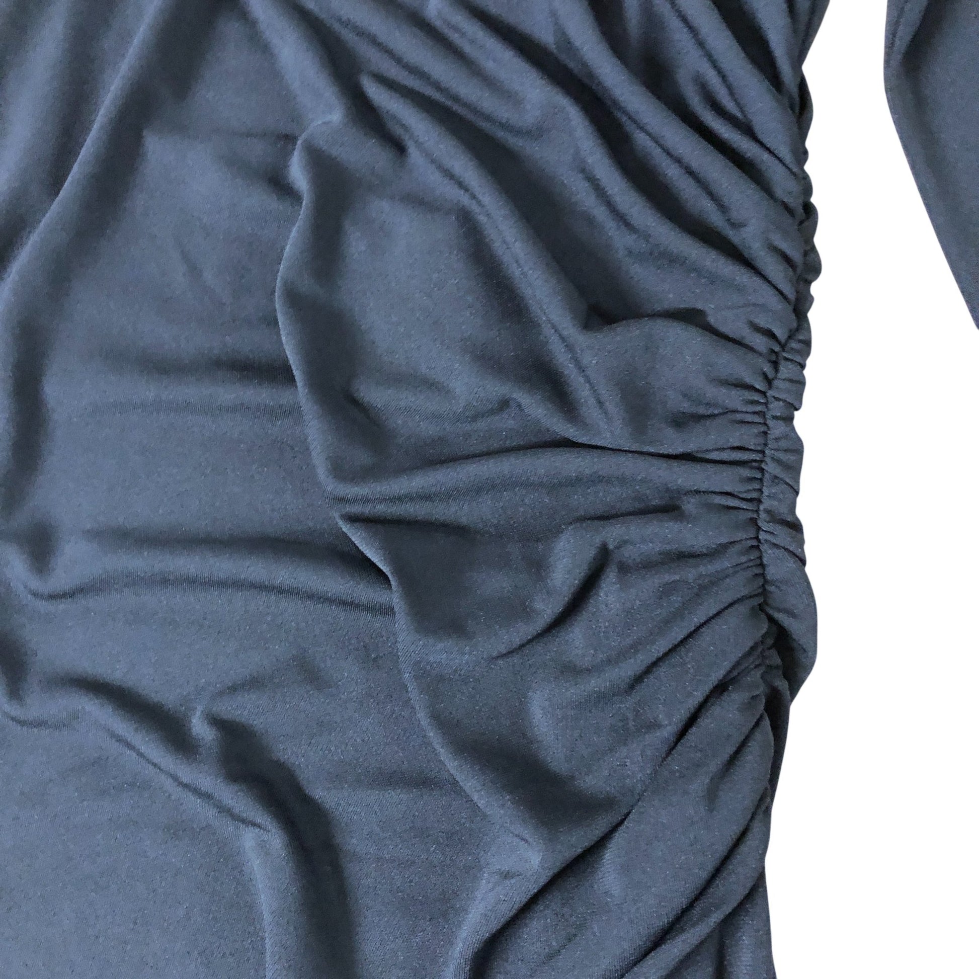 - Features: Ruched waist with split side hem