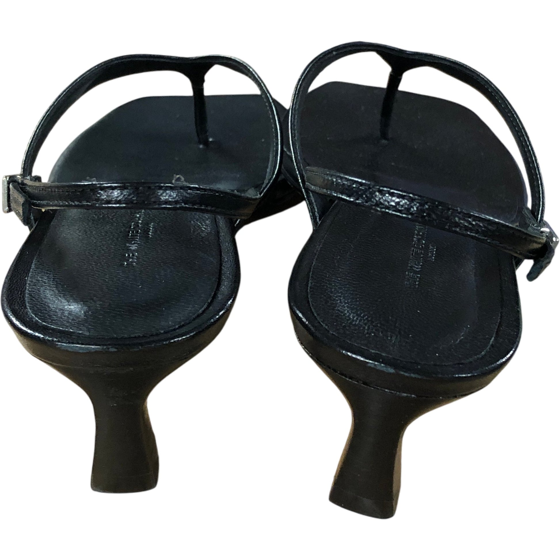 Branded Black Leather Kitten Heel Toe Post Sandals UK 4 Women's
