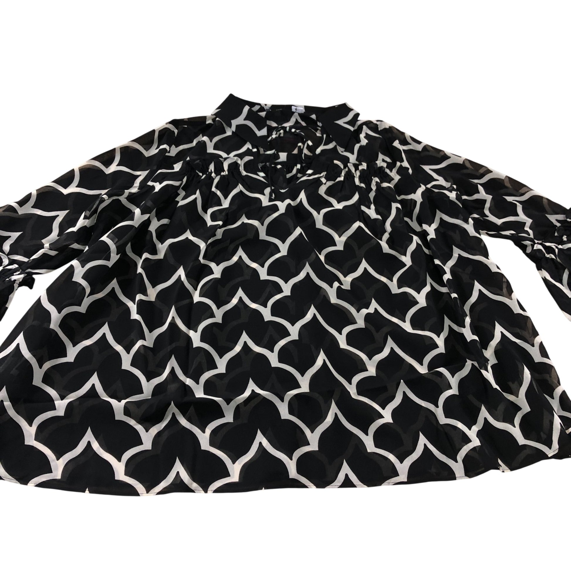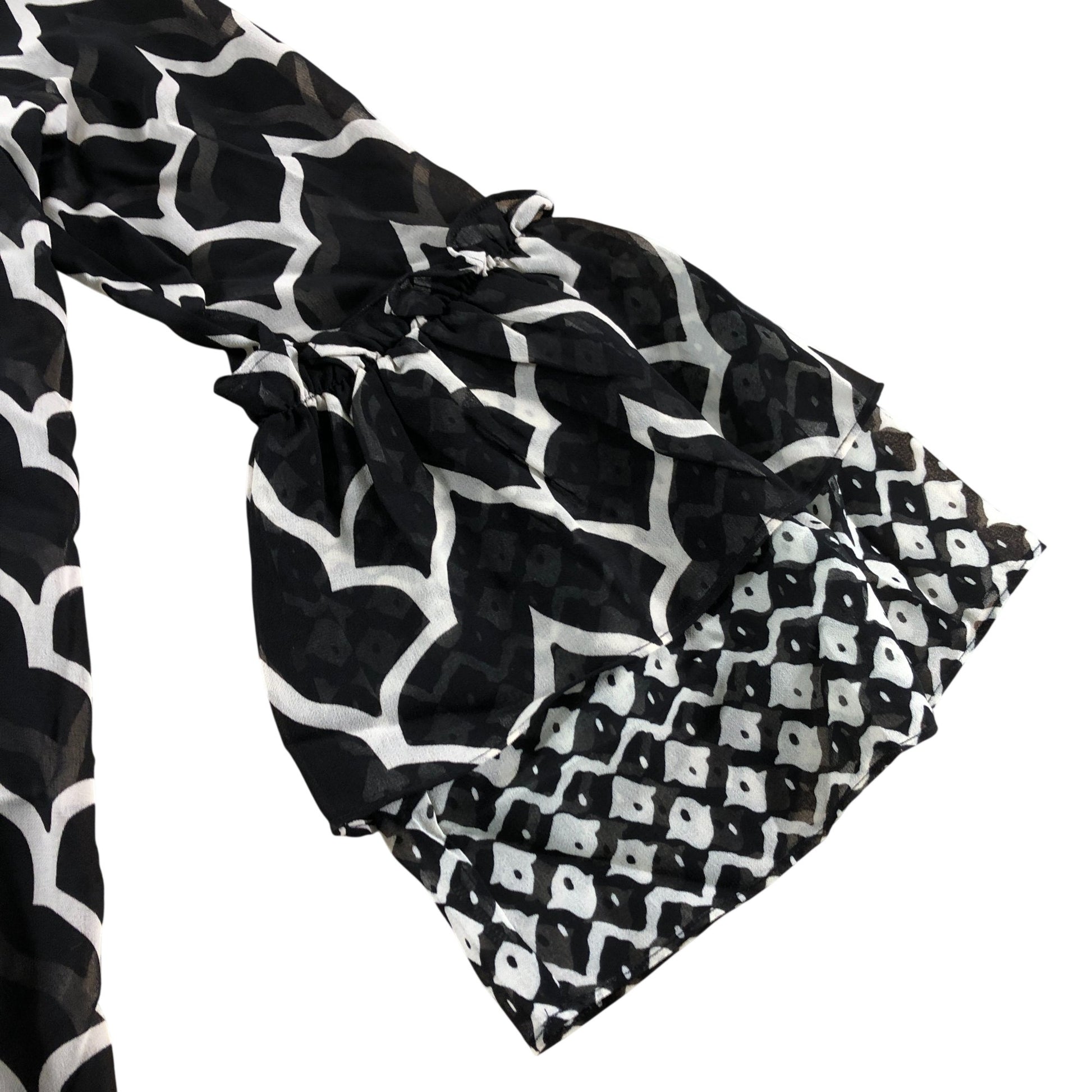 Branded Black Printed Sheer Tie Blouse - Size 6