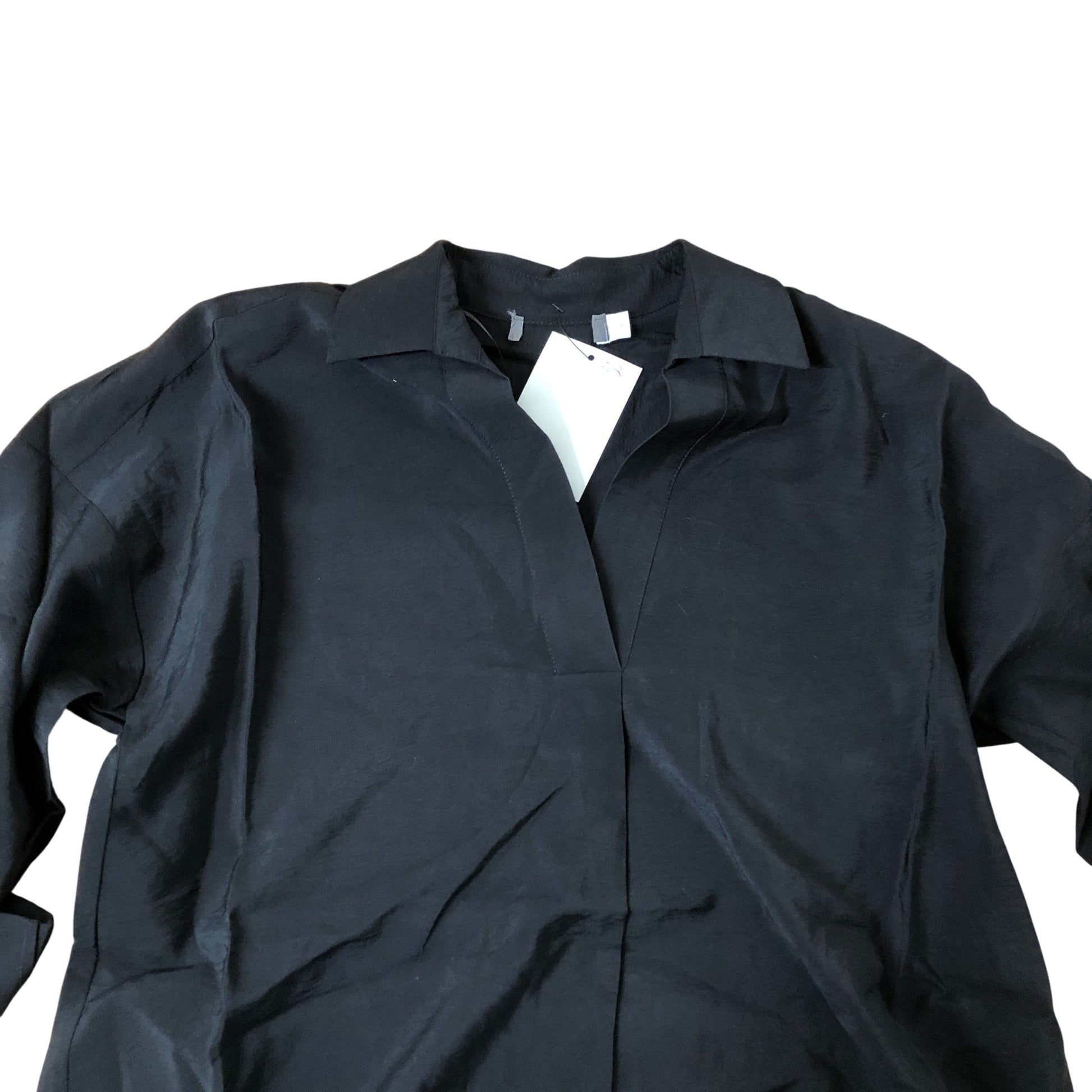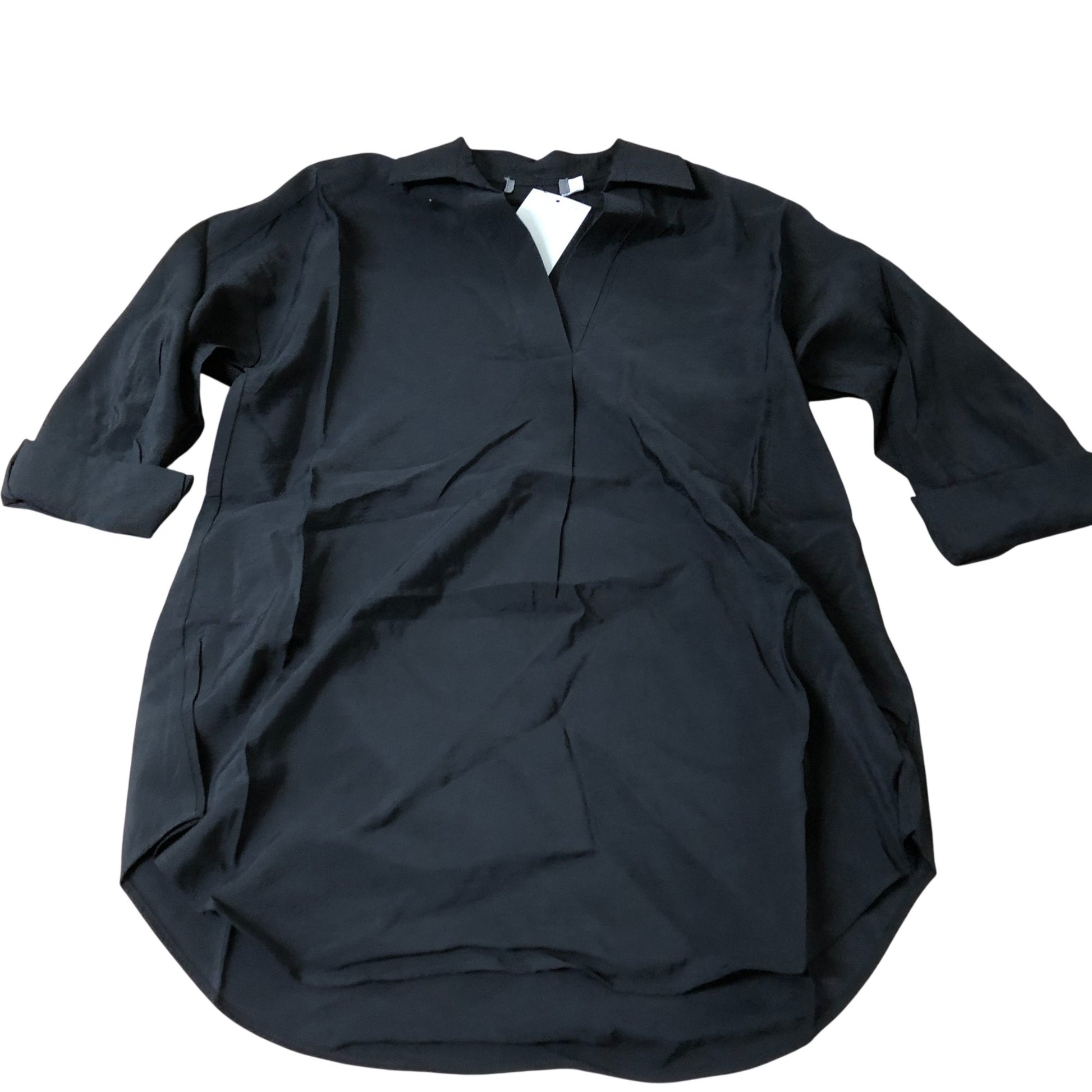 Branded Black Tunic Top Women's Stylish V Neck Roll Sleeve UK Size 8