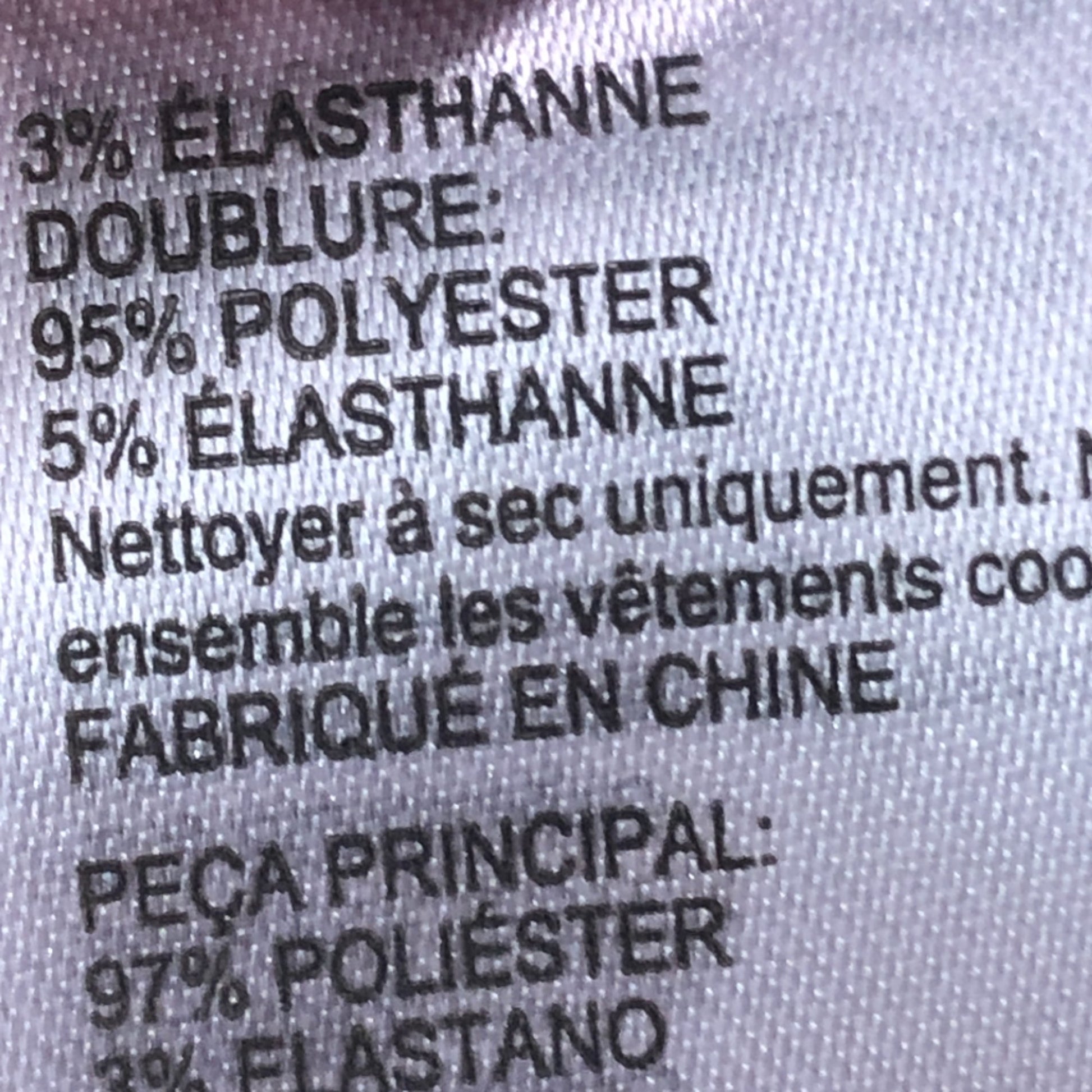 - Material Composition: Main - 97% Polyester, 3% Elastane; Lining - 95% Polyester, 5% Elastane