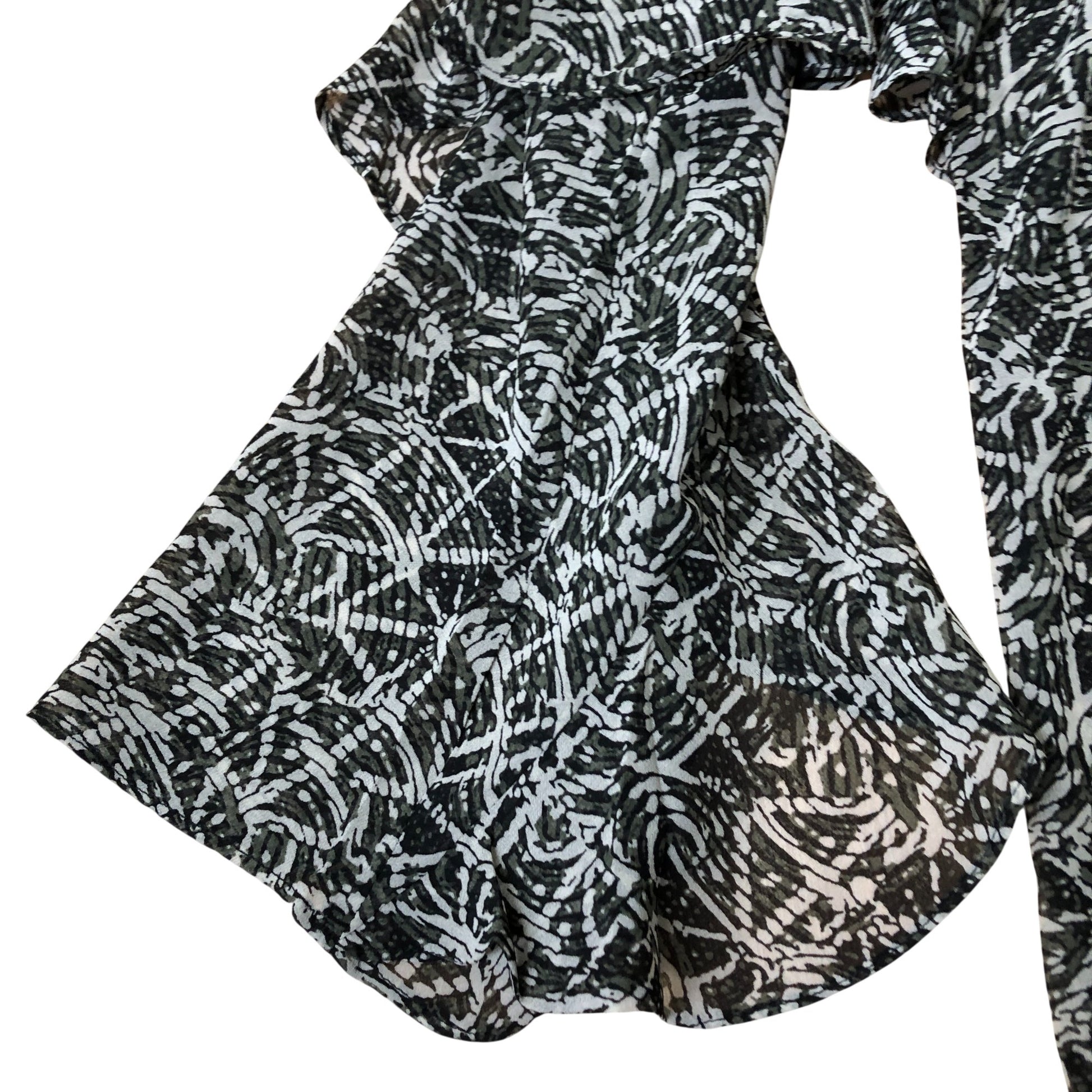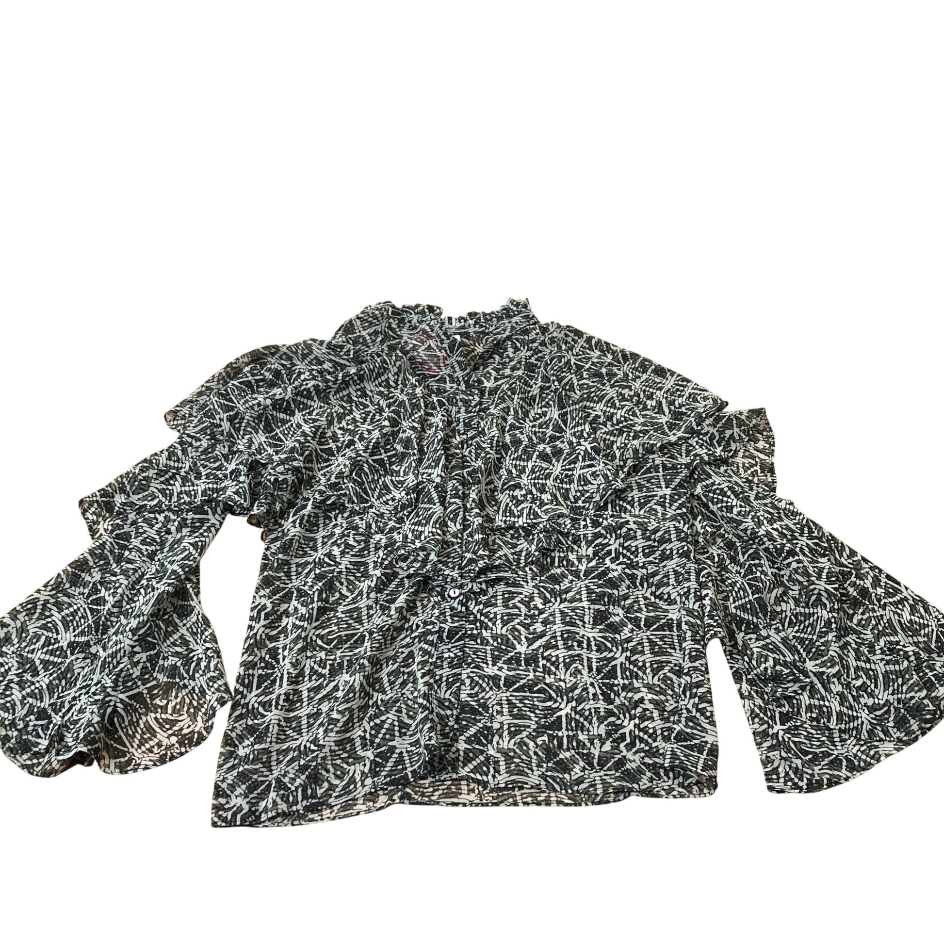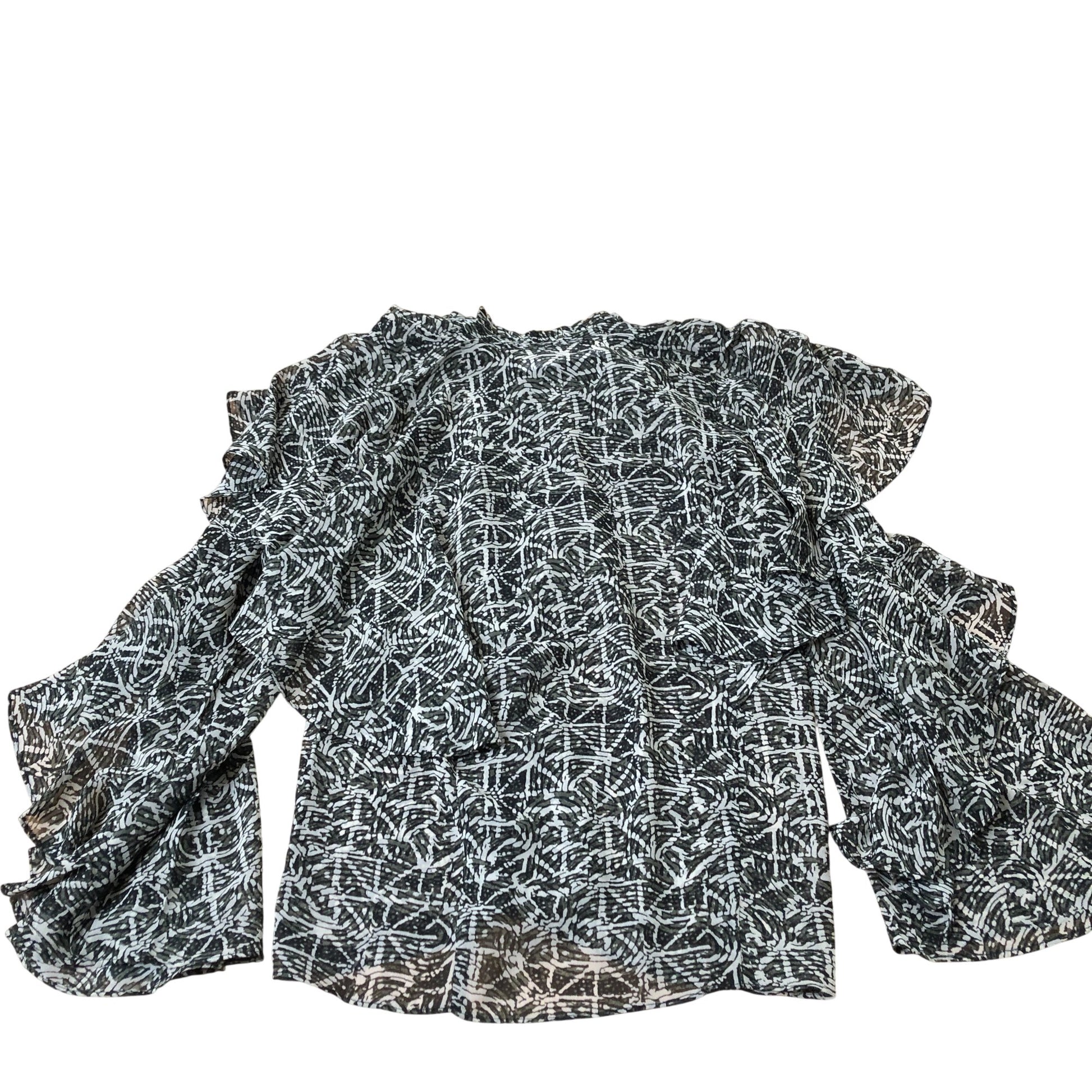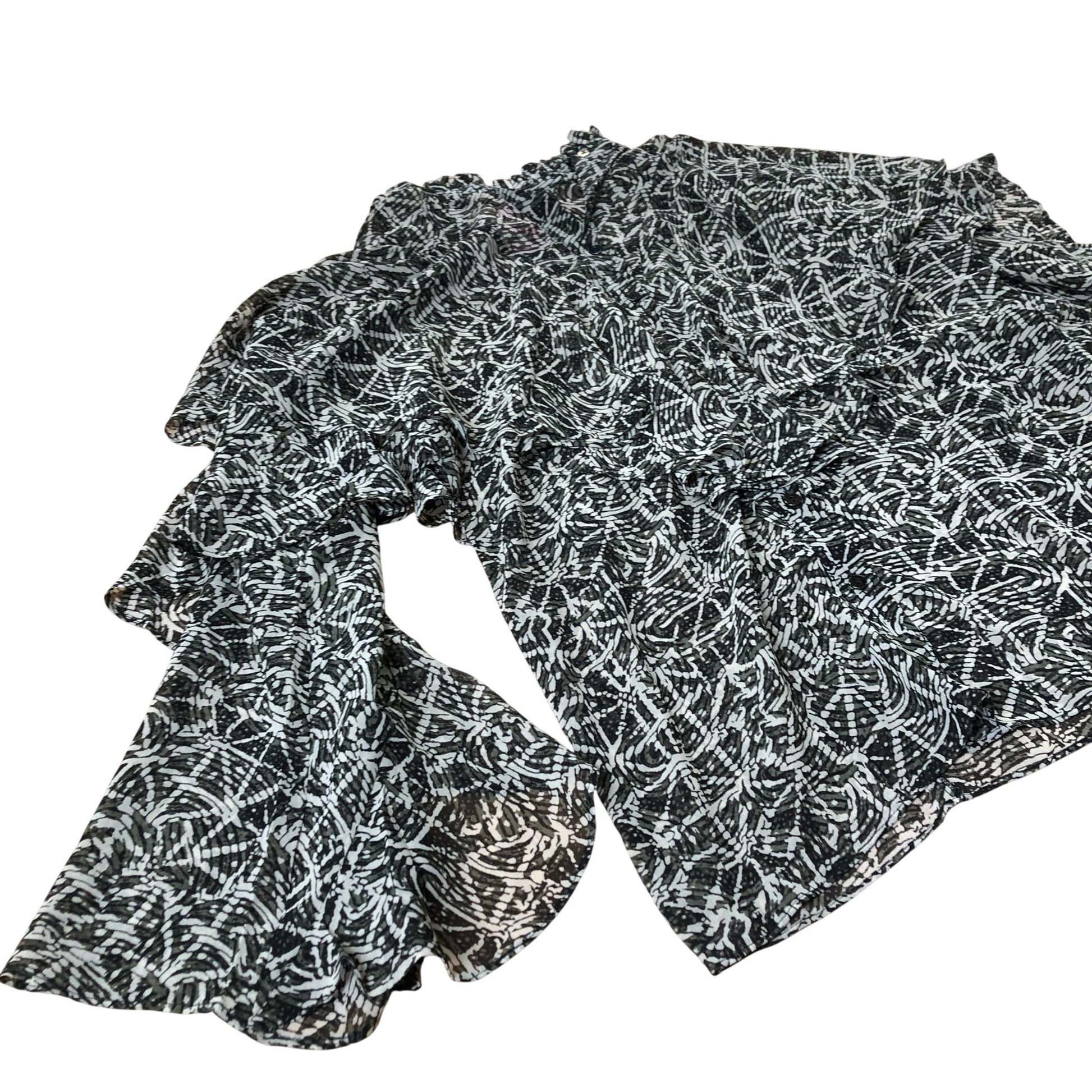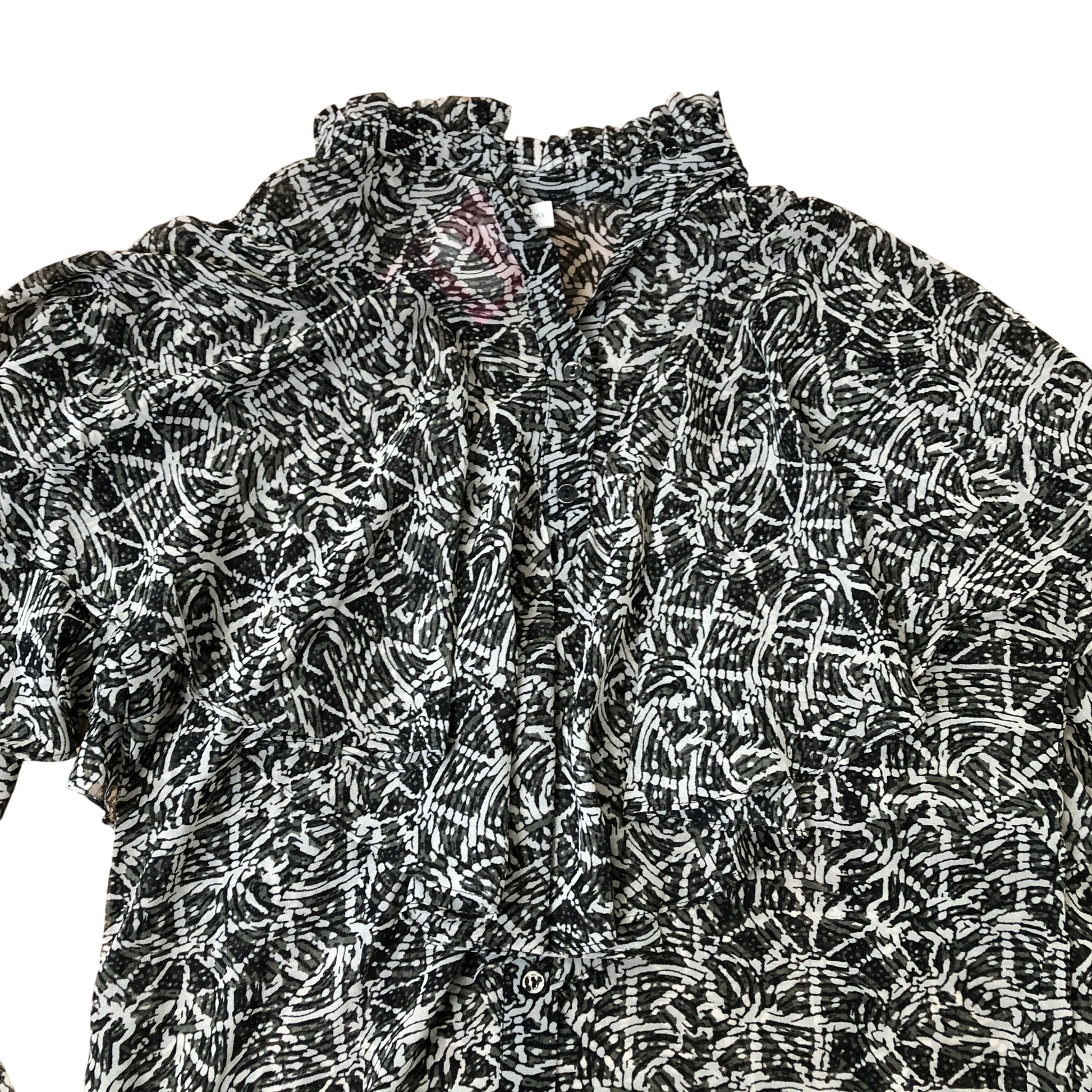 Branded Blouse Women's Flowy Ruffle Patterned Black White Polyester Top UK6