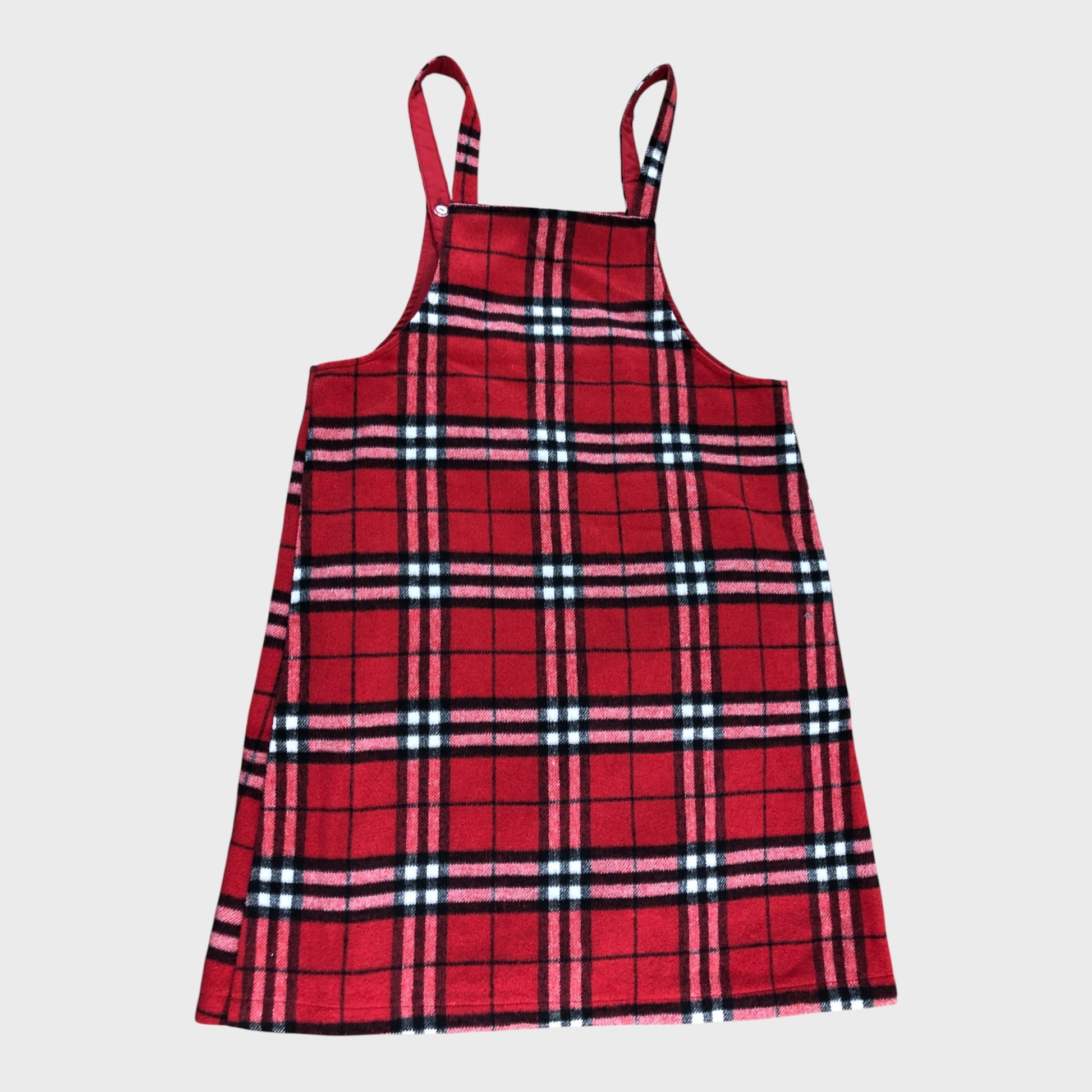 Branded Girls Pinafore Dress Red Check Wool Blend Sleeveless