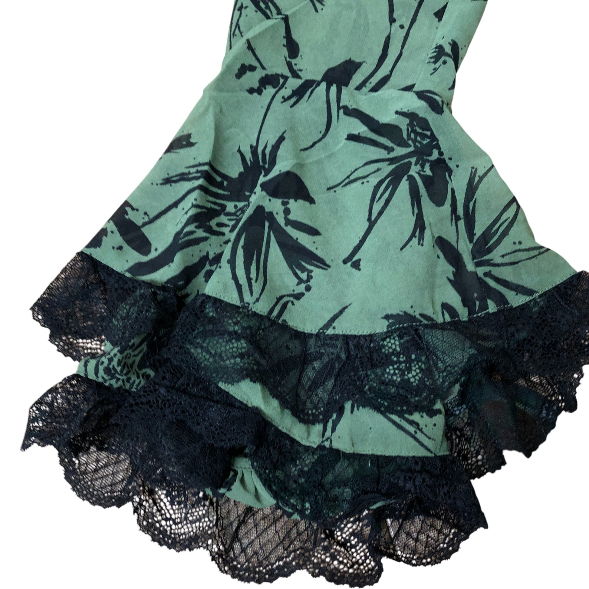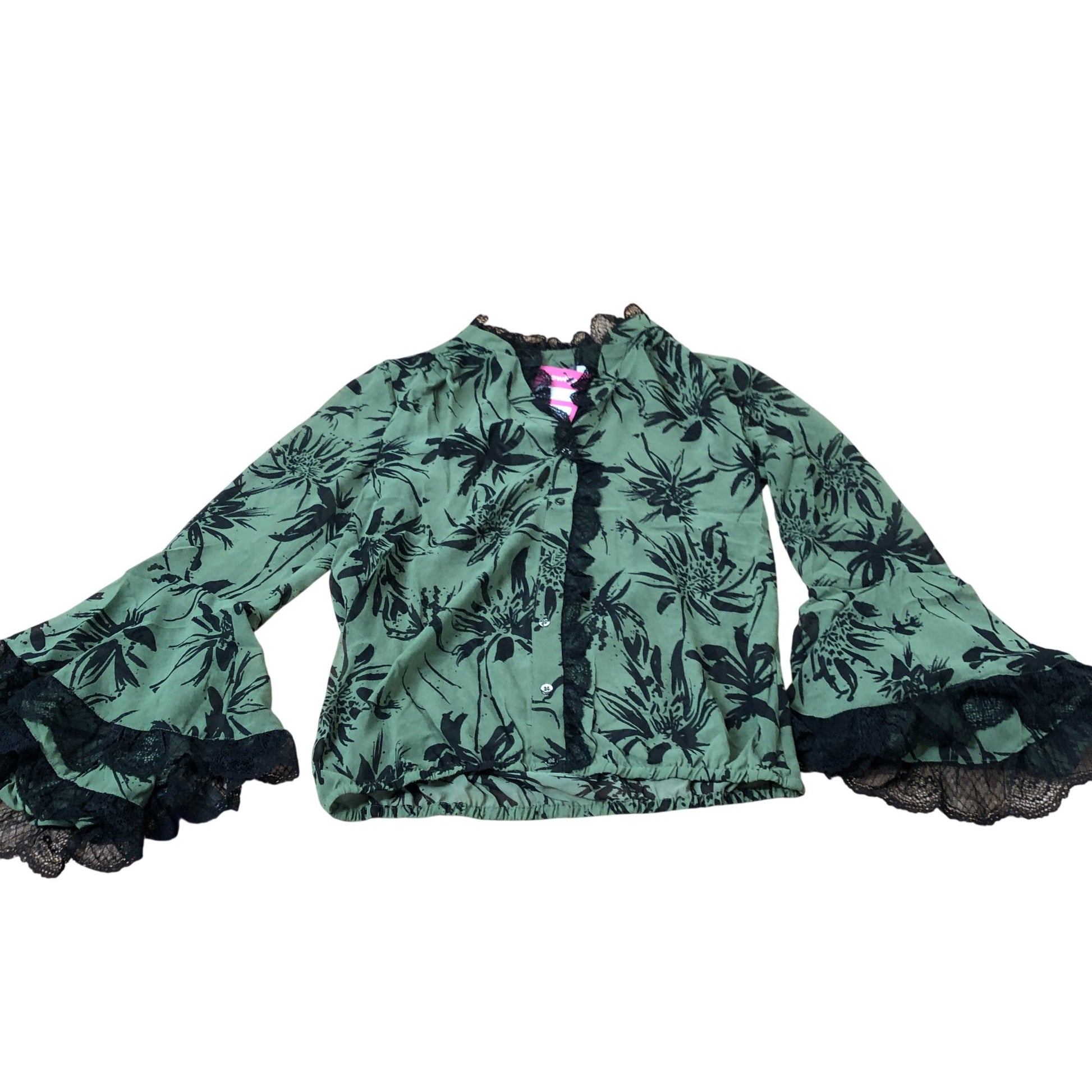 Branded Green Floral Lace Trim Blouse Women's Casual Long Sleeve Top UK6