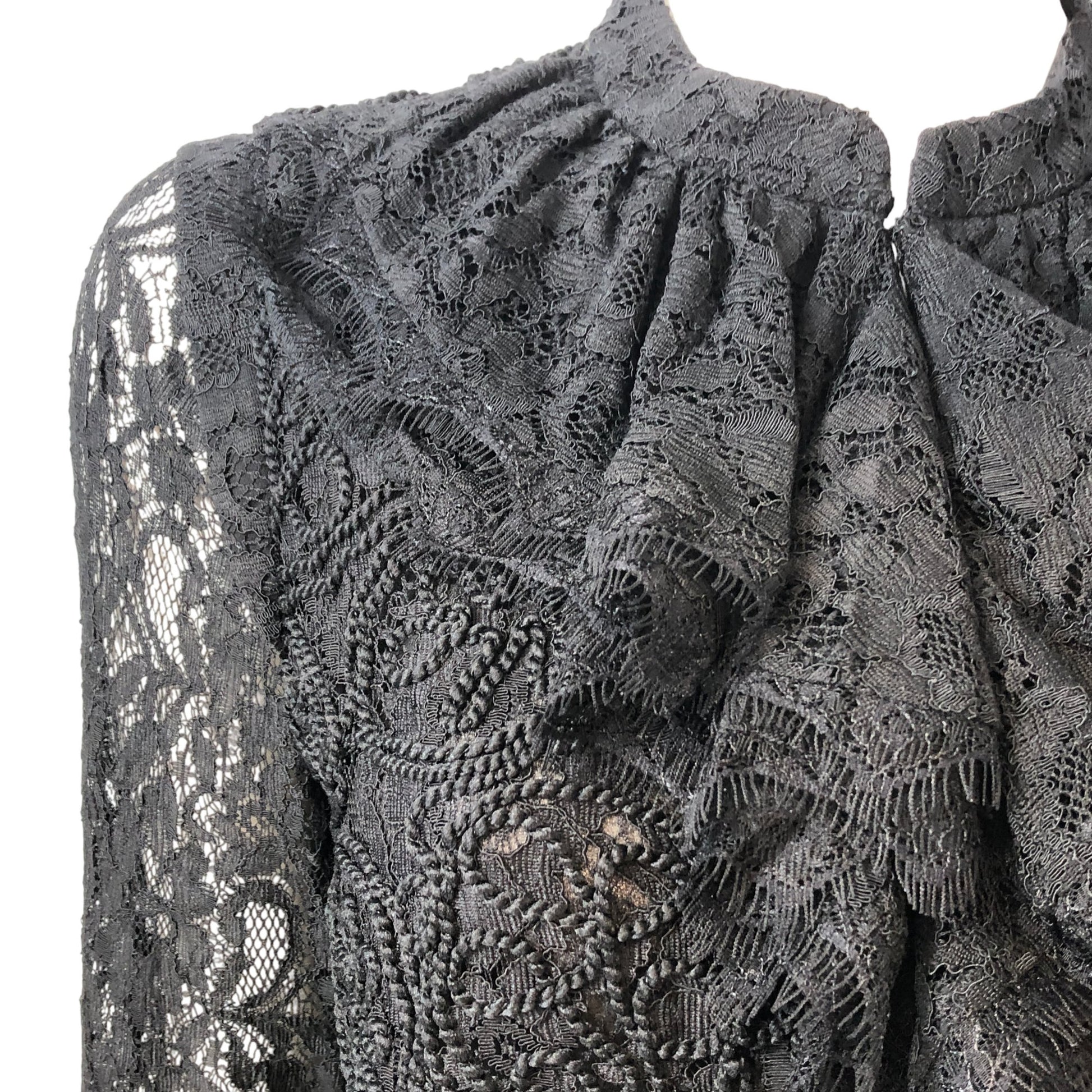 Branded Lace Peplum Blouse UK12 Women's Black Frill Detail Long Sleeve Top