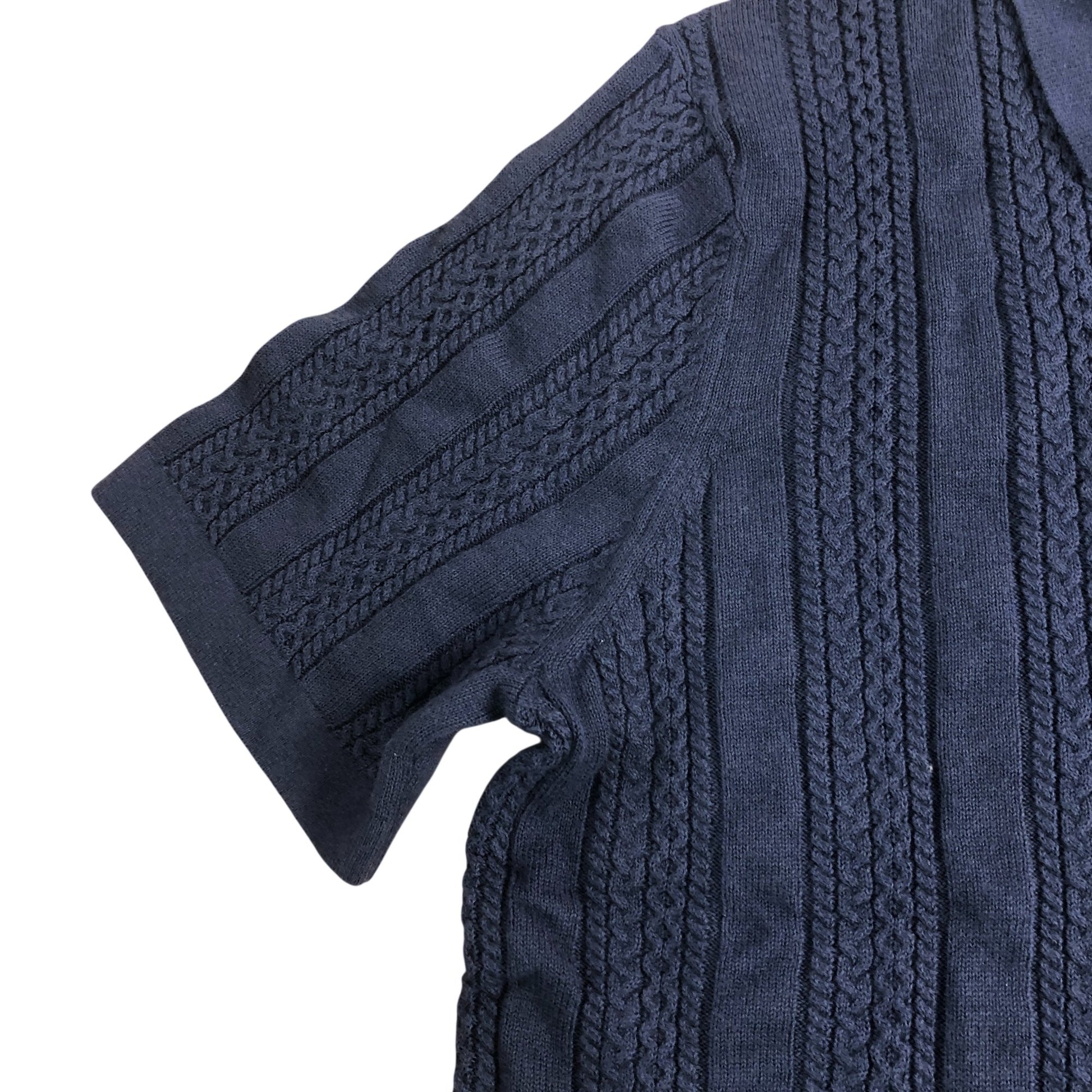 Branded Men's Cable Knit Polo Shirt Size L Navy Blue Cotton