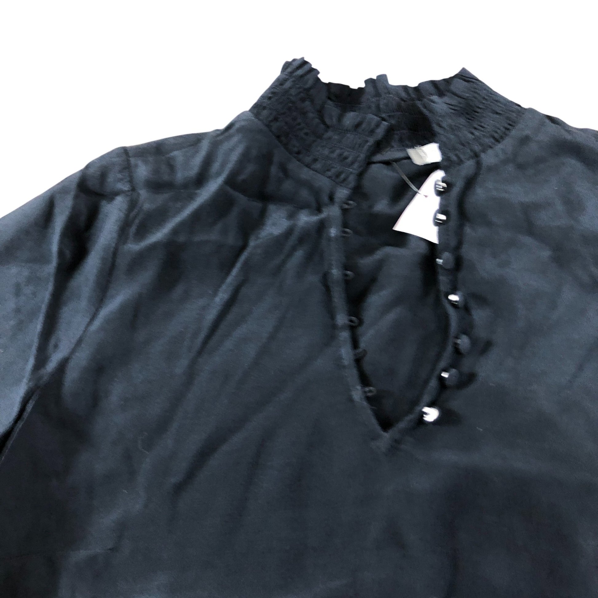 - Features: Shirred neckline and cuffs