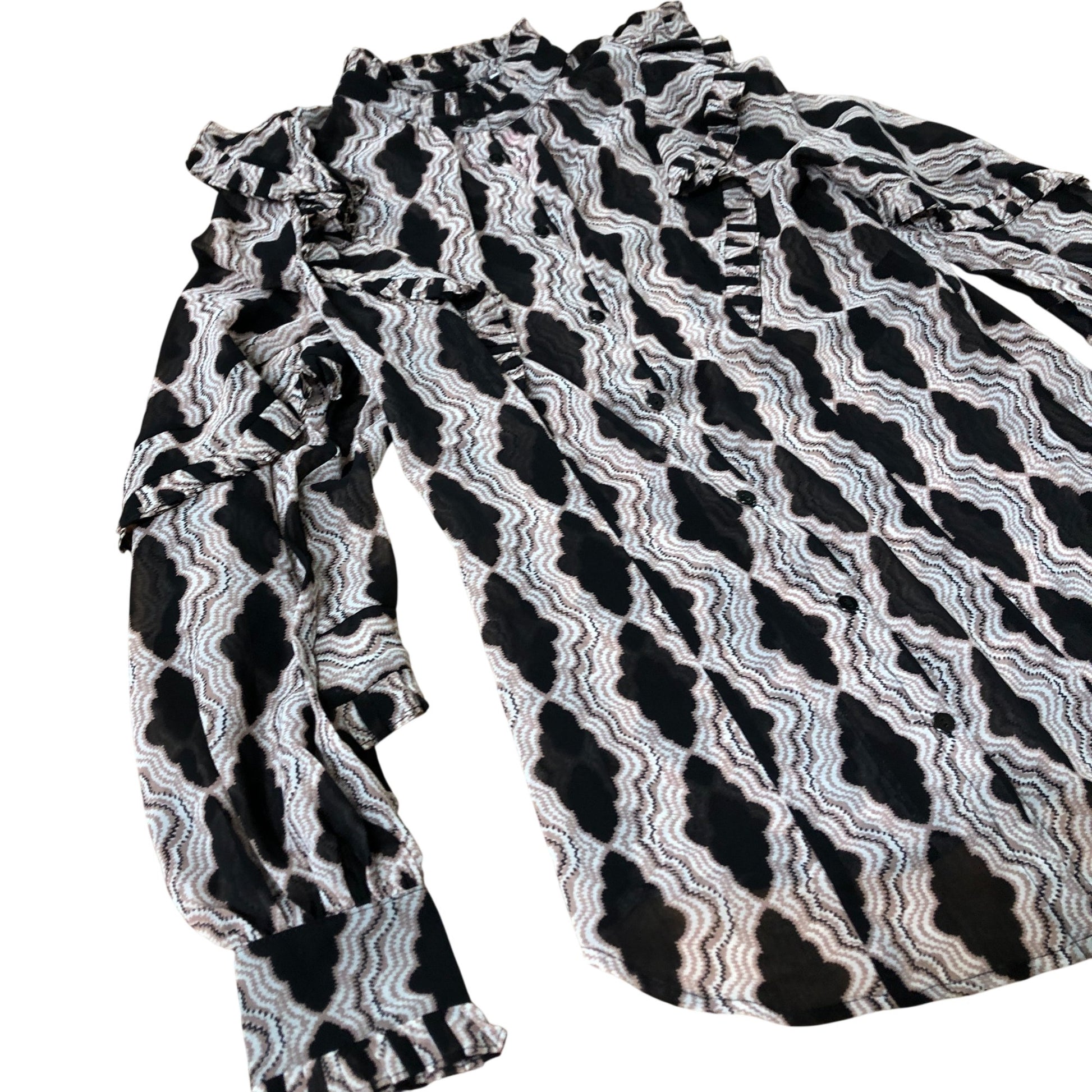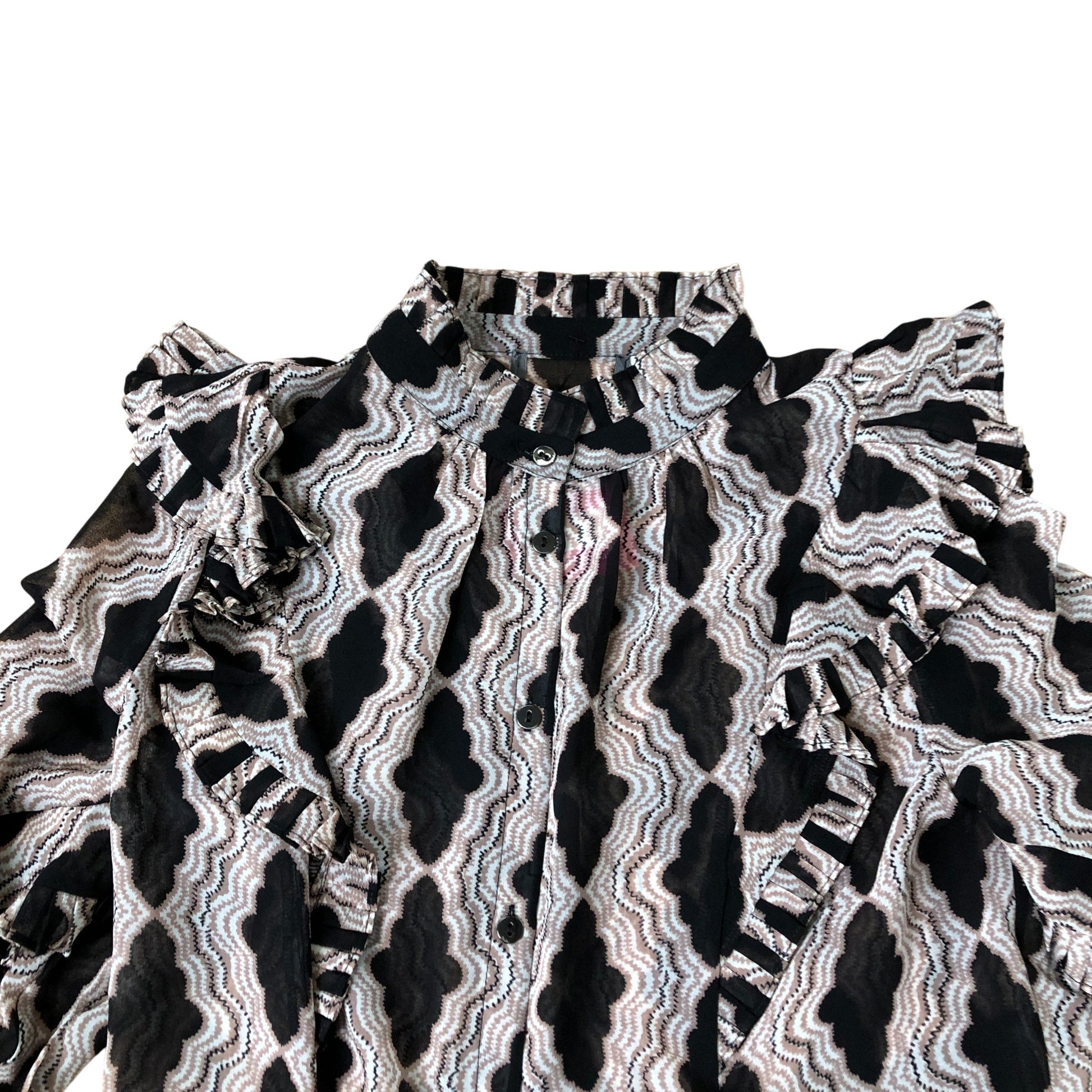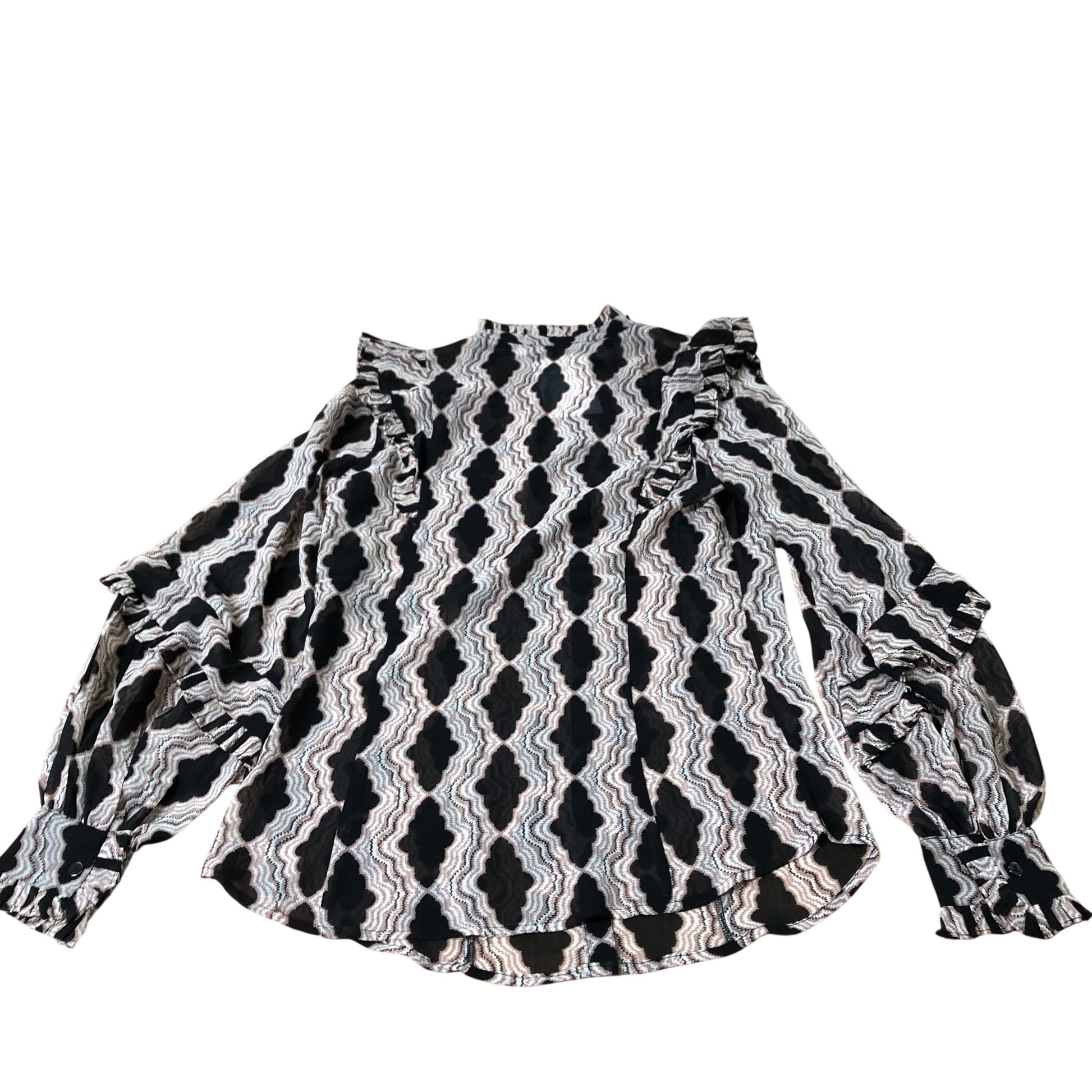 Branded Ruffle Blouse Women's Long Sleeve Patterned Polyester Top UK8