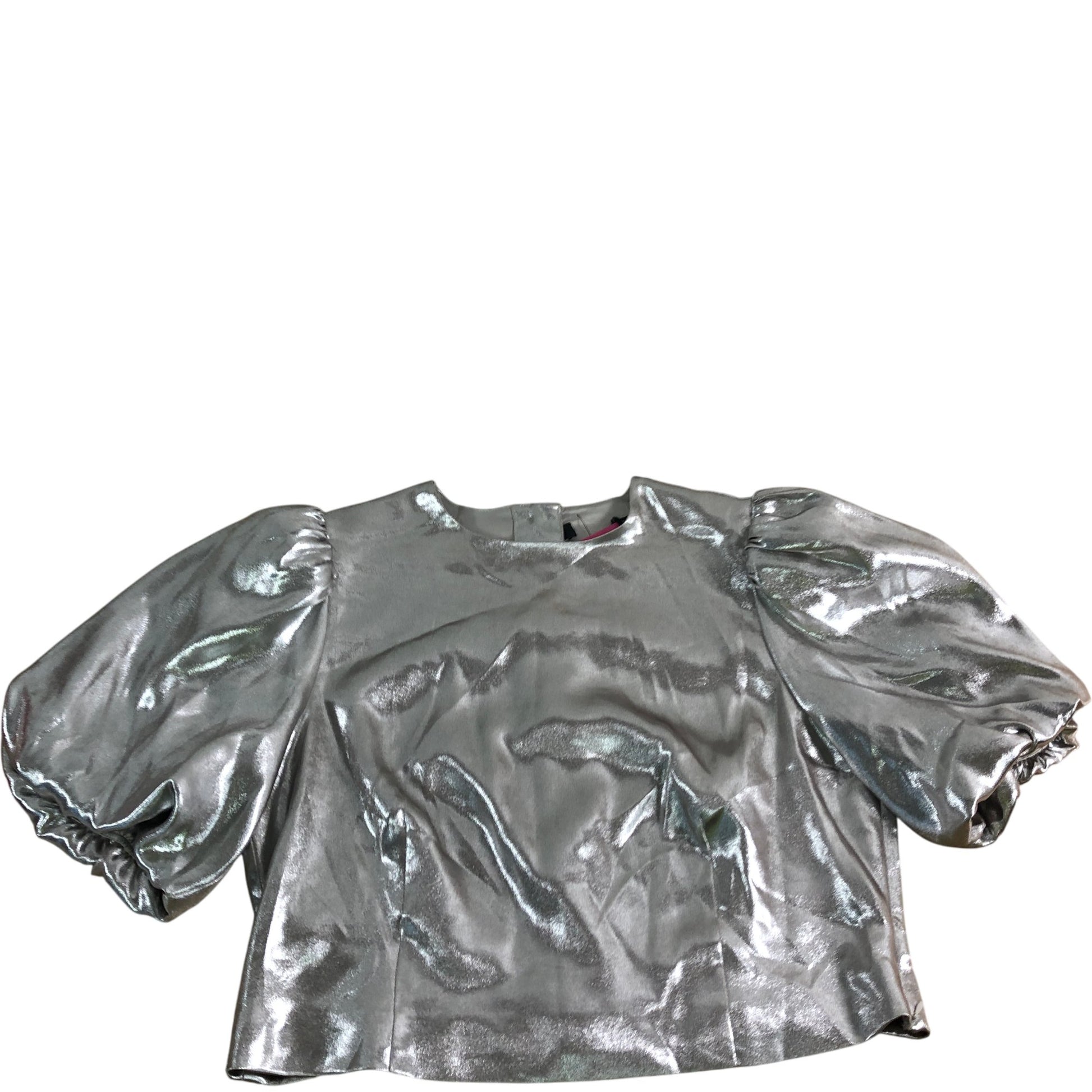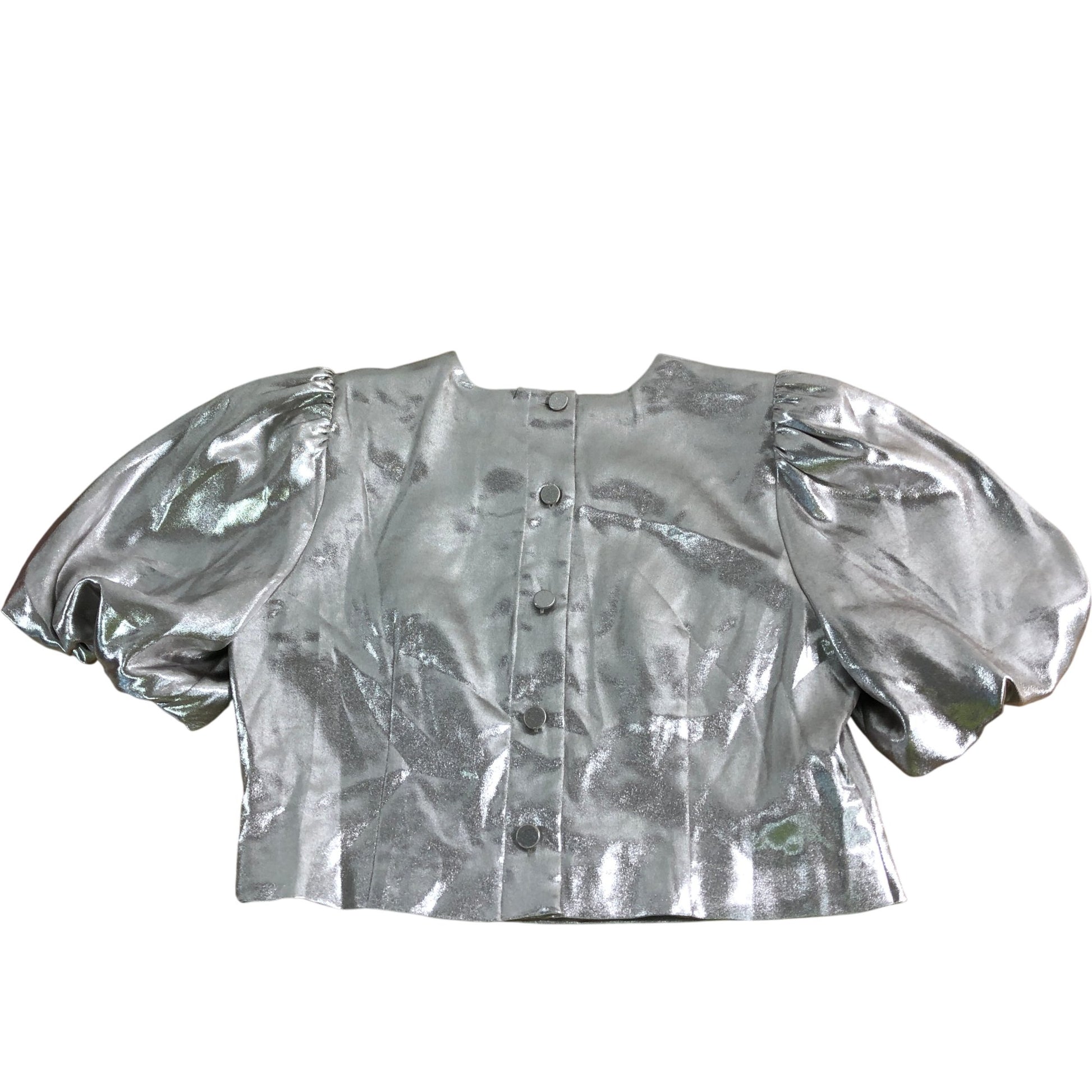 Branded Silver Puff Sleeve Crop Top Size UK16 Women's Shiny Polyester