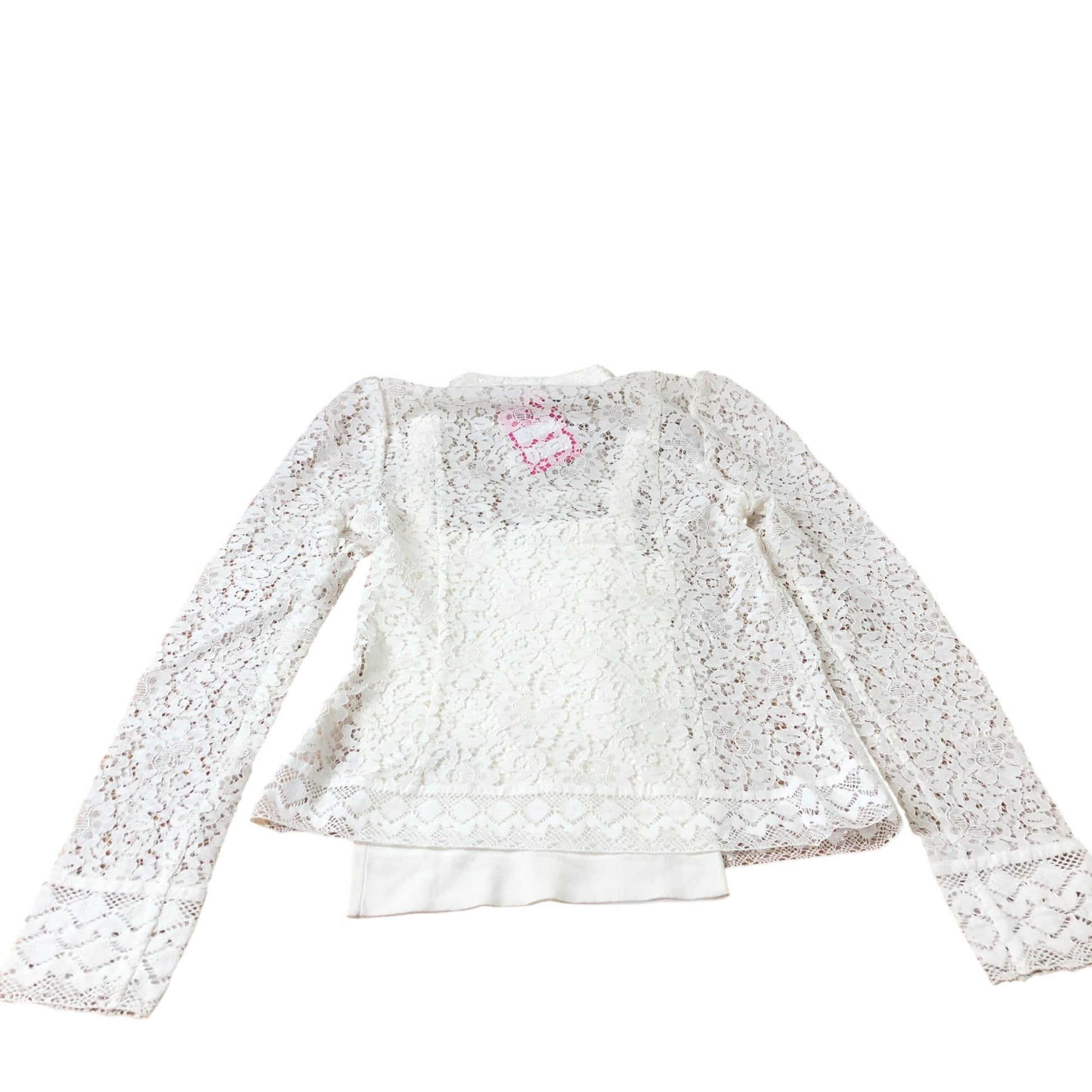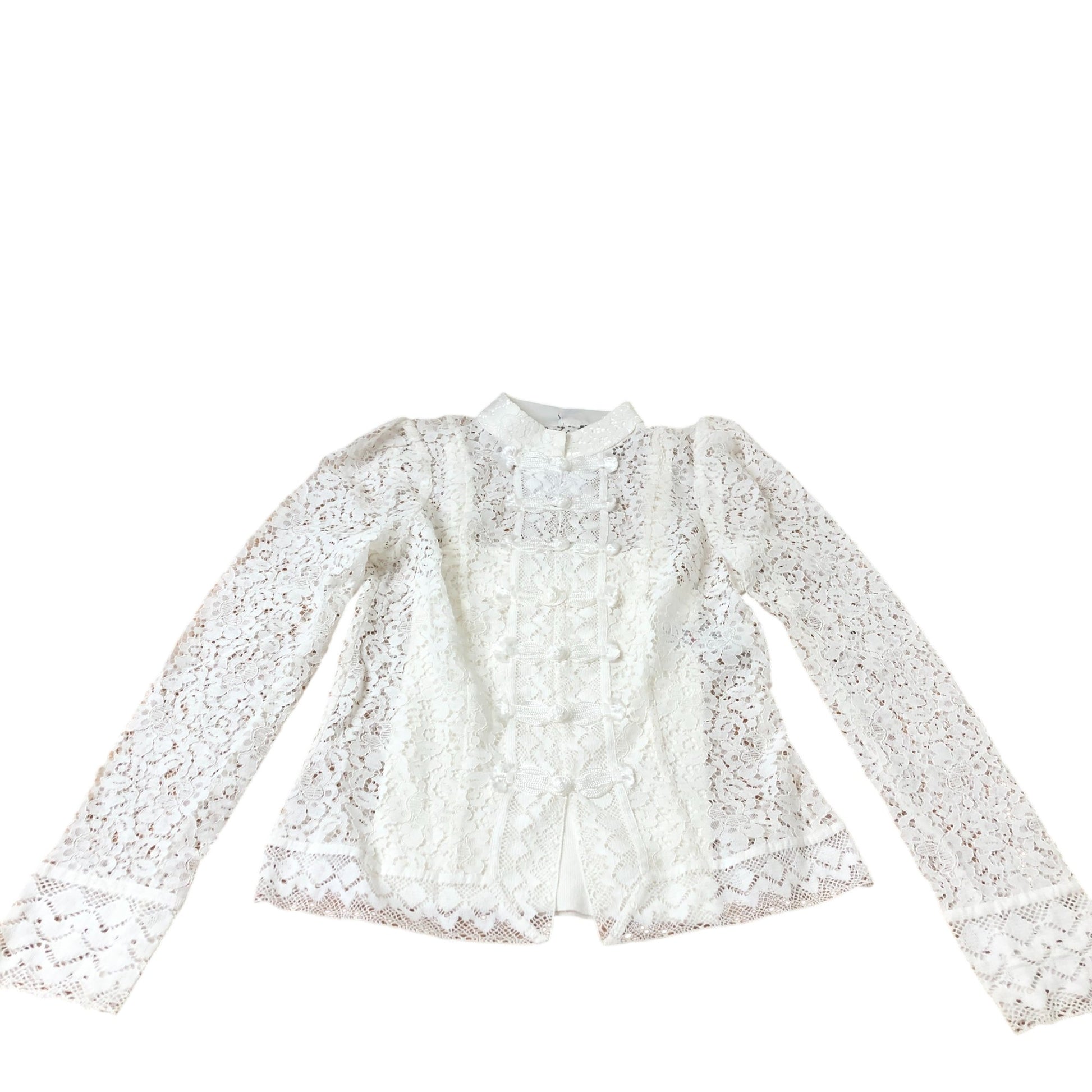 Branded White Lace Blouse Women's Long Sleeve High Neck Button Front Size 8