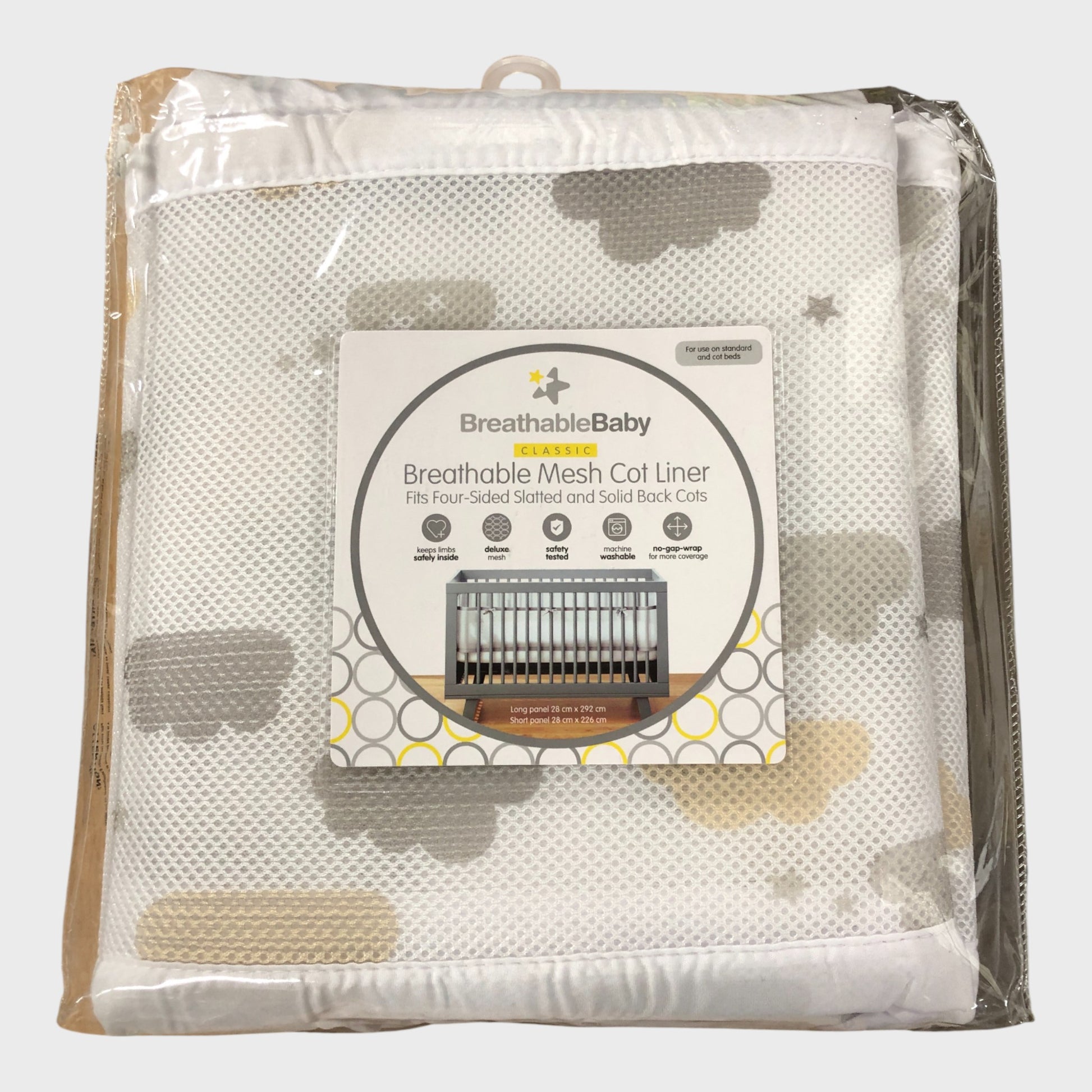 BREATHABLEBABY Mesh Cot Liner Slatted & Solid Cots - Cloud Design