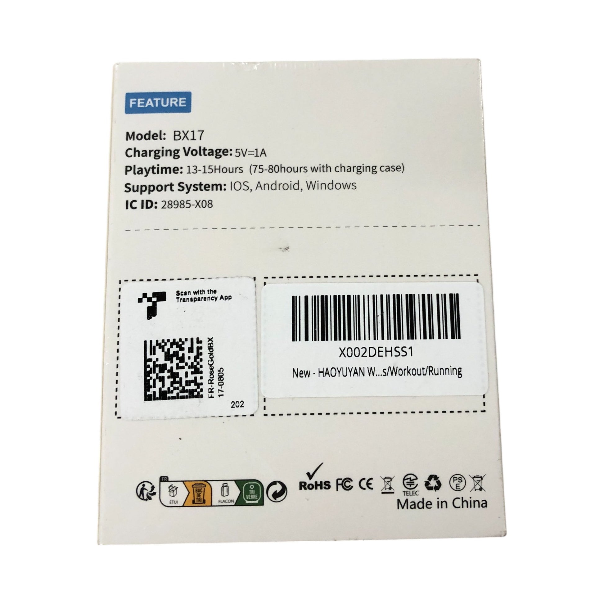 BX17 Wireless Sports Earbuds Sweat Proof Comfortable Long Battery Life Rose Gold