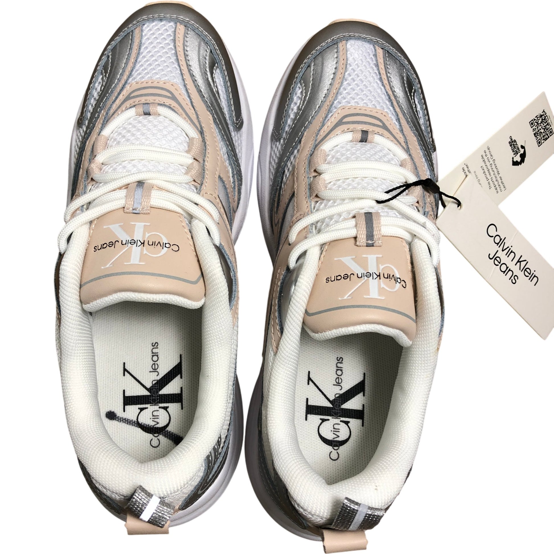 Calvin Klein Jeans Retro Tennis Low Trainers UK3.5 Women's Sneakers Silver