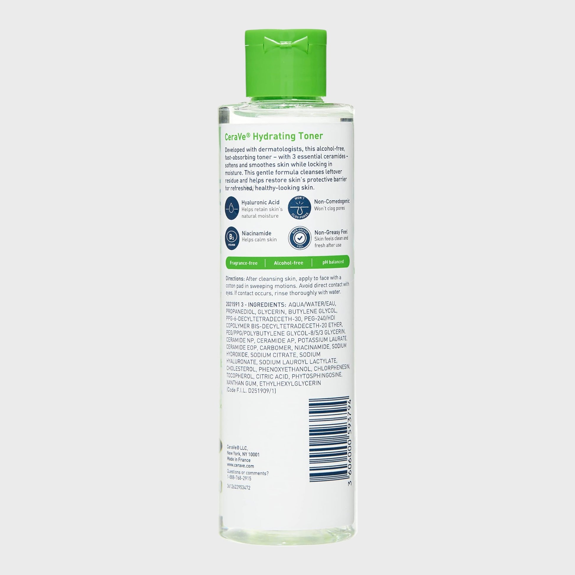 Revitalise your skin with CeraVe Hydrating Toner. This pH balanced toner gently removes impurities while nourishing skin with hyaluronic acid and niacinamide. Infused with three essential ceramides, it helps restore and maintain the skin's natural barrier. Recommended by dermatologists for all skin types.
