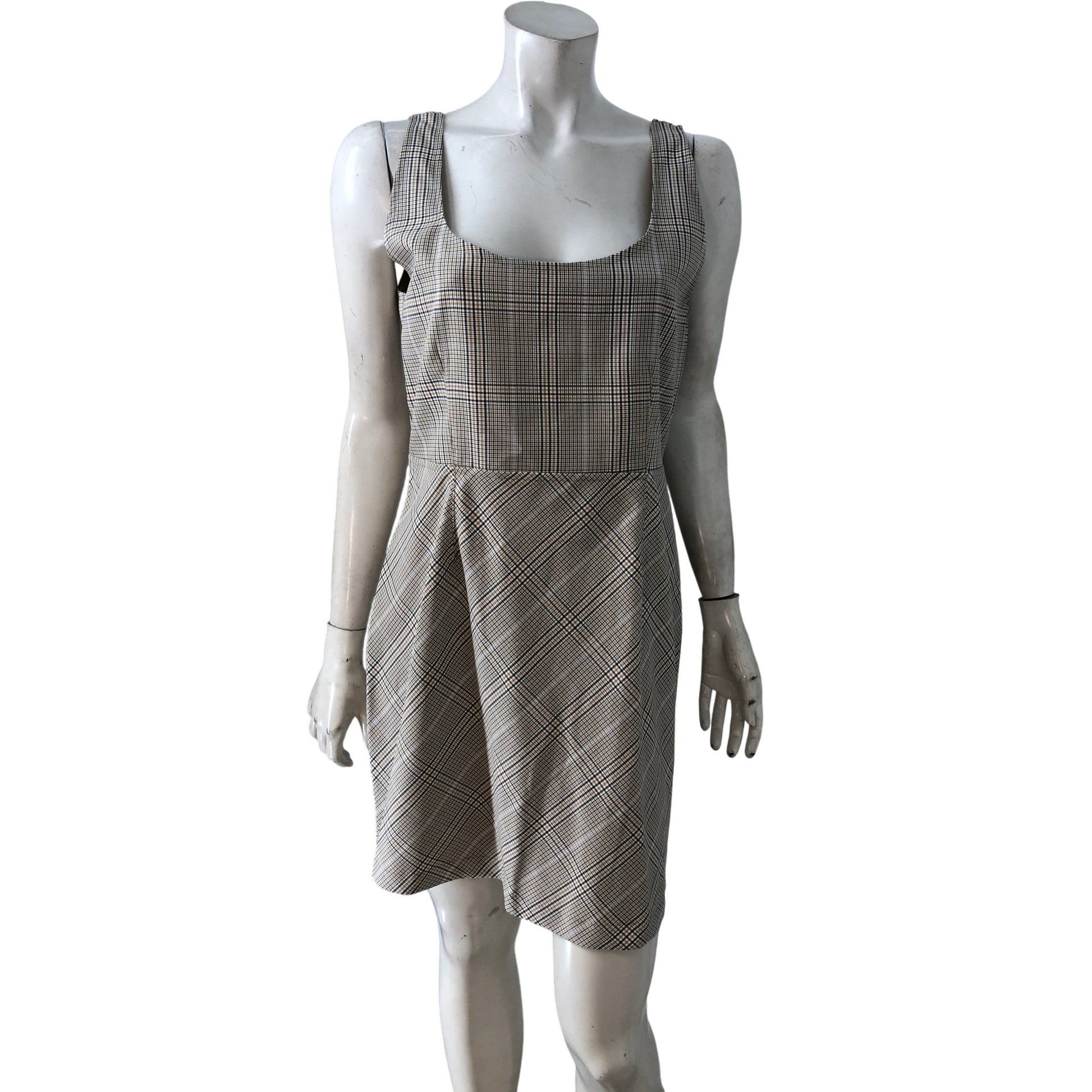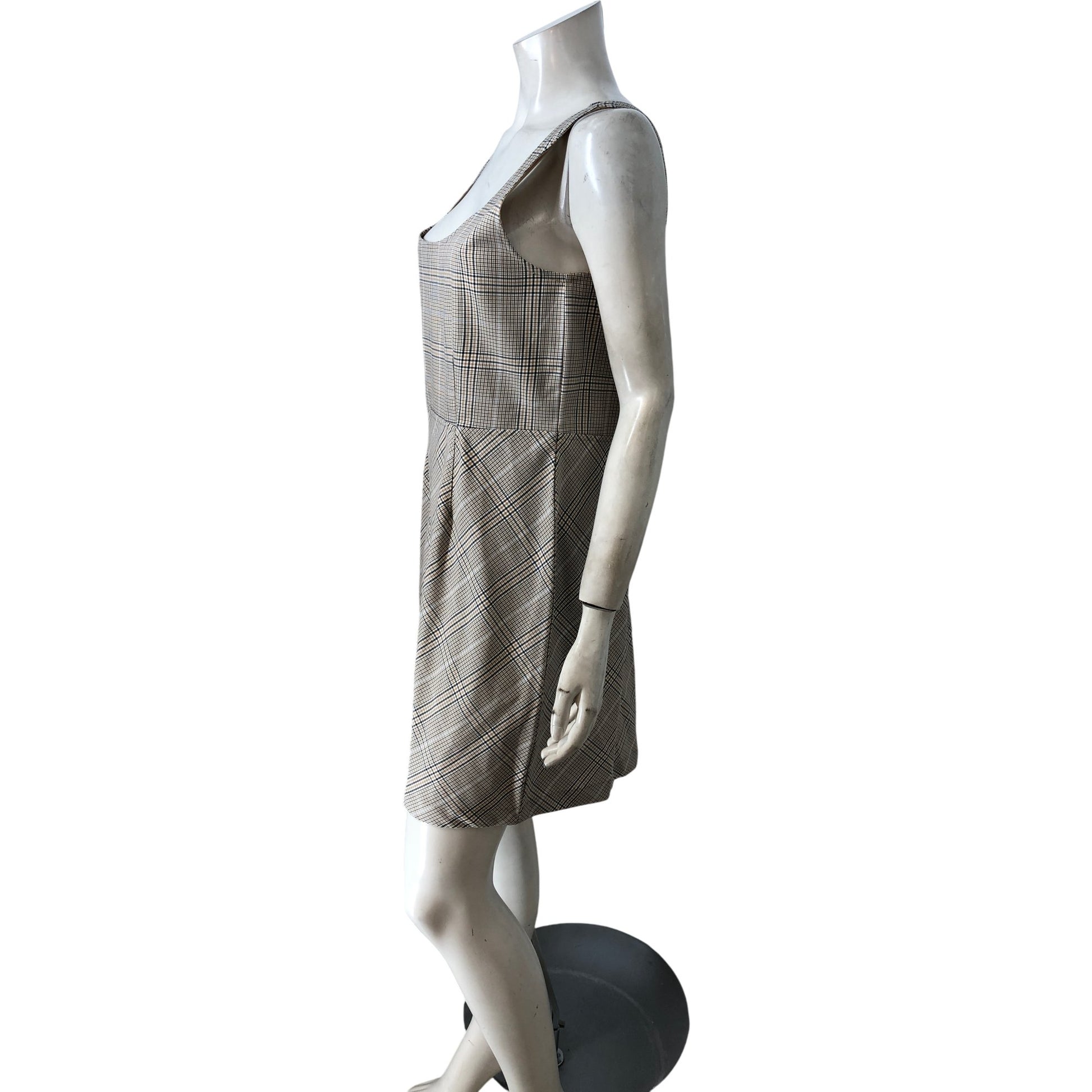 Checked Square Neck Dress UK16 Women's Summer Casual Flared Fit Polyester