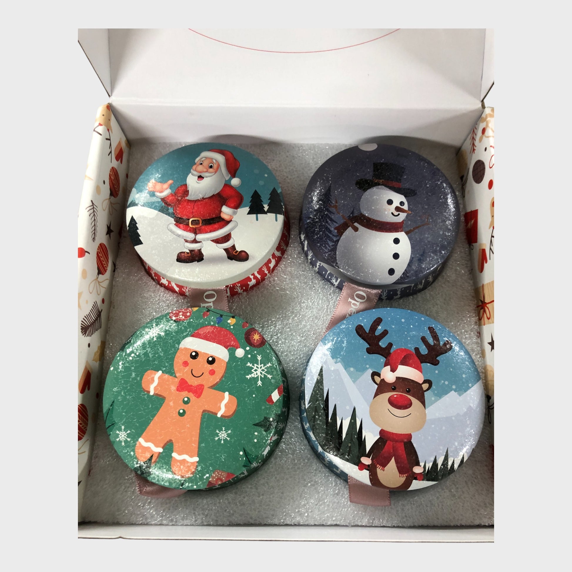 Christmas Scented Candle Set Decorative Tin 4 Pack Gift