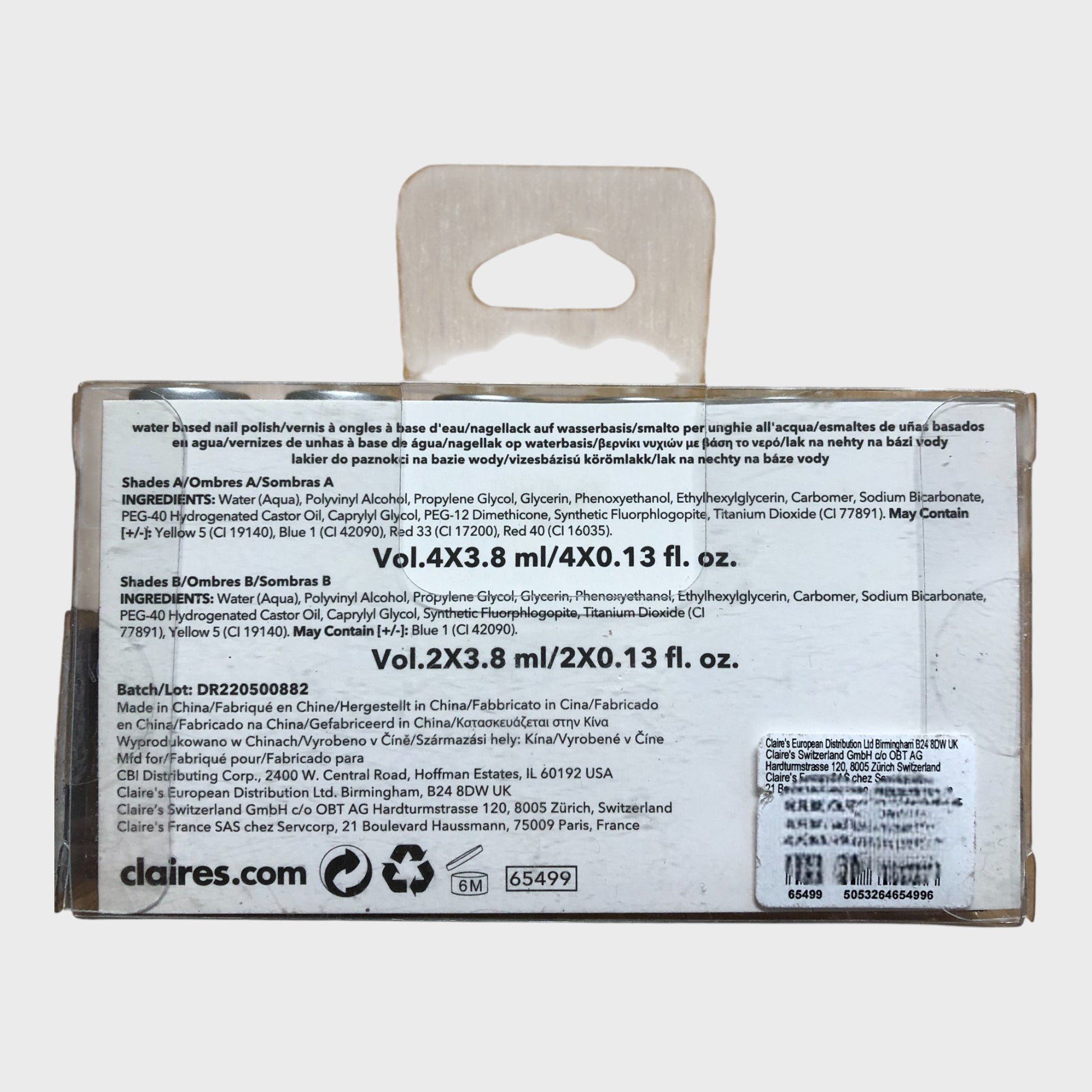 CLAIRE'S Peel-Off Water-Based Nail Polish Set 6 Colours