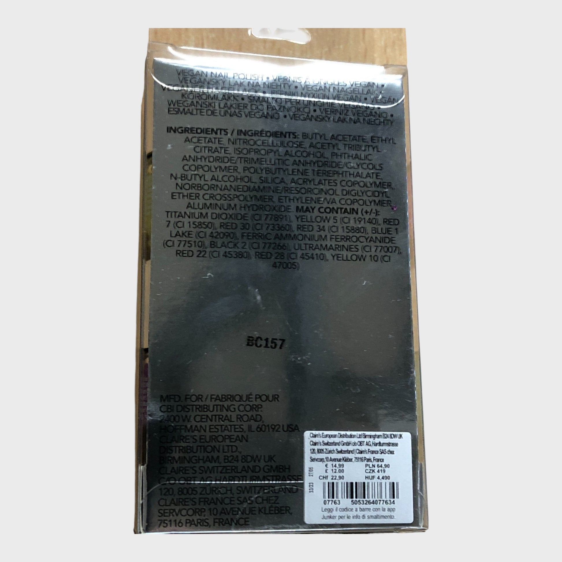 Discover Claire's expertly curated collection of six vegan nail polishes, each delivering 5ml of vibrant, glitter-infused colour. This comprehensive 30ml set showcases a stunning multicoloured palette with a glossy finish that catches the light beautifully.
