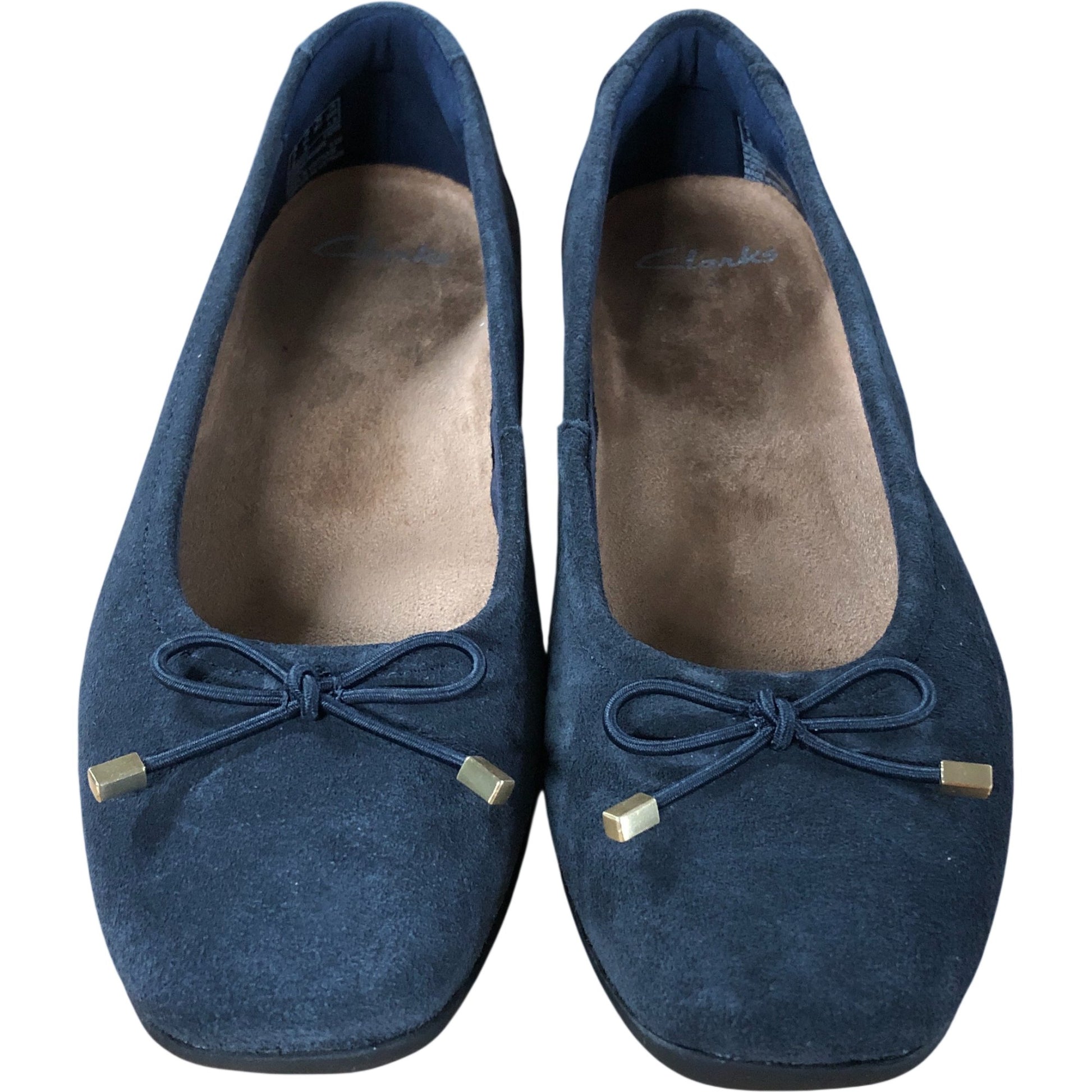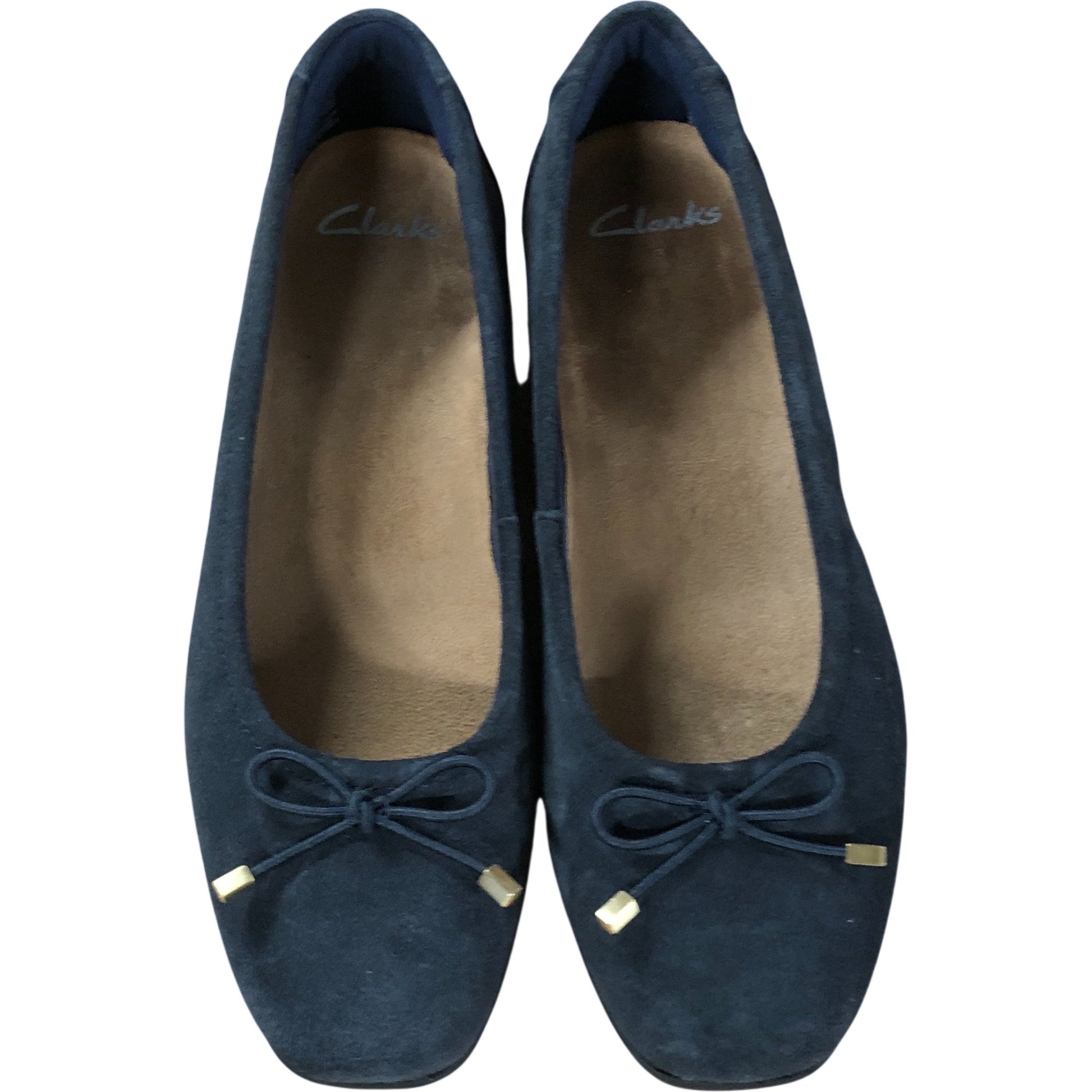 Clarks Candra Light UK3 D Women's Navy Suede Flats with Bow Detail