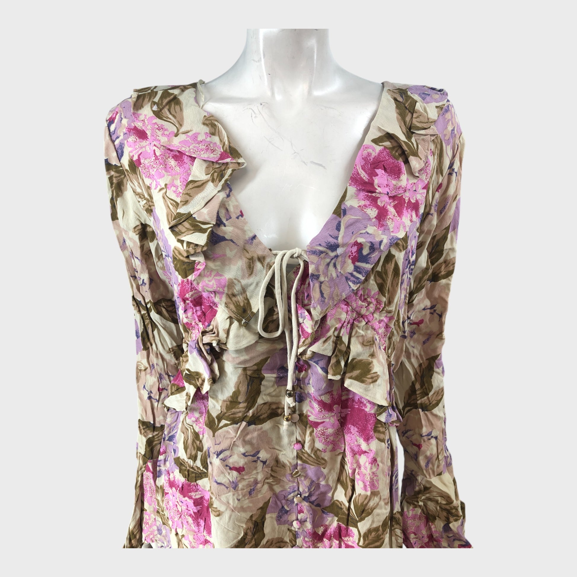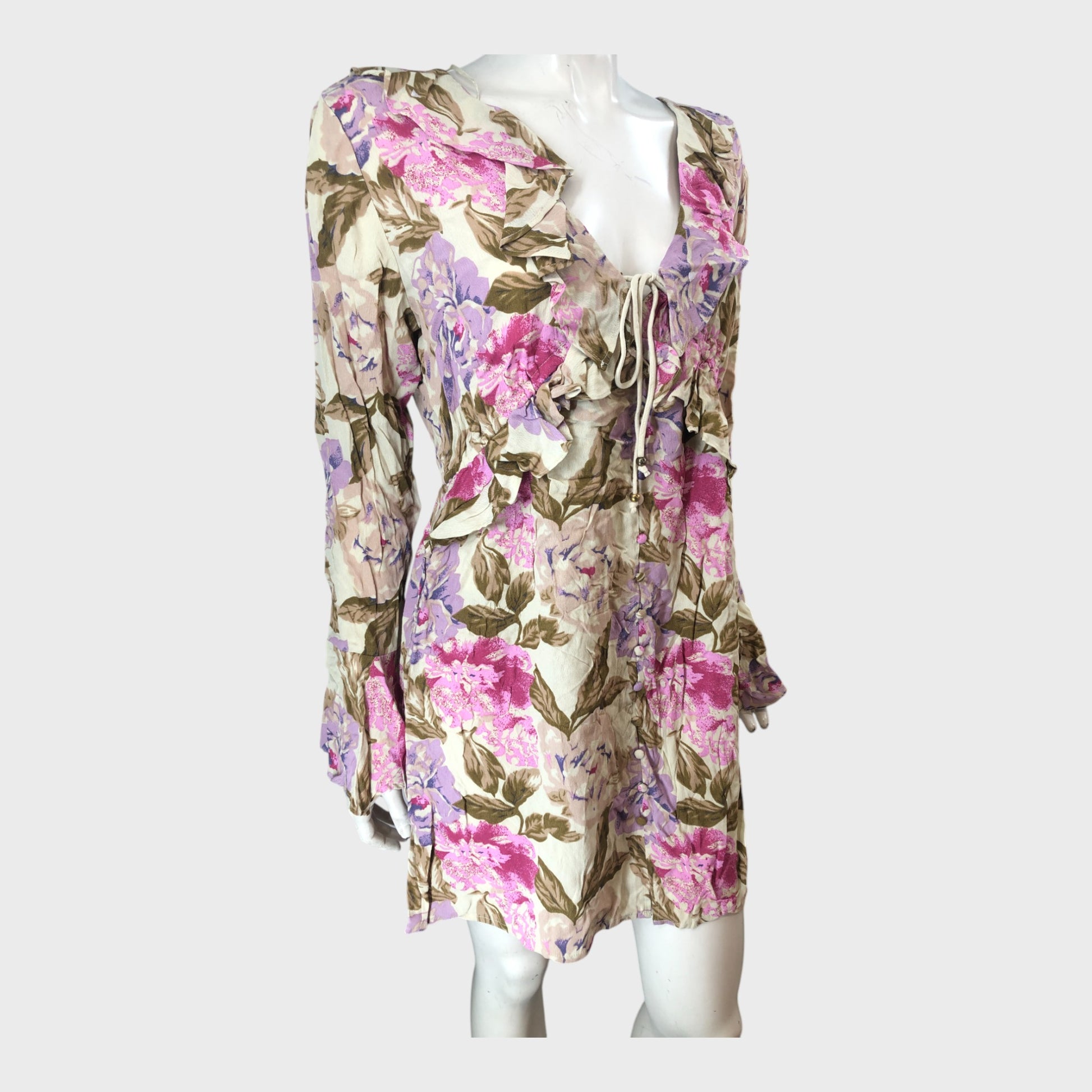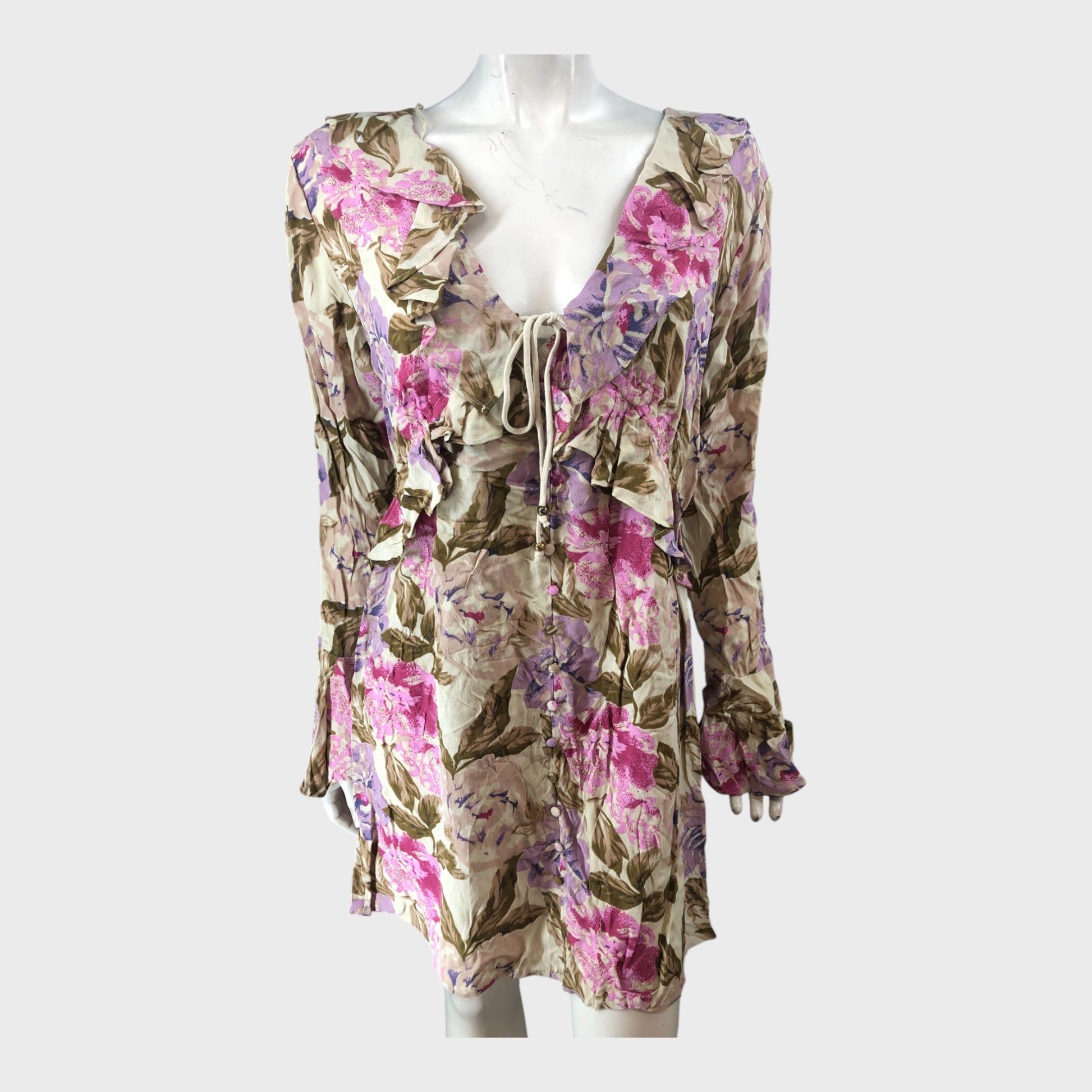 A great choice for the warmer months, this Cream Floral Frill Swing Mini Dress offers a playful yet elegant style.