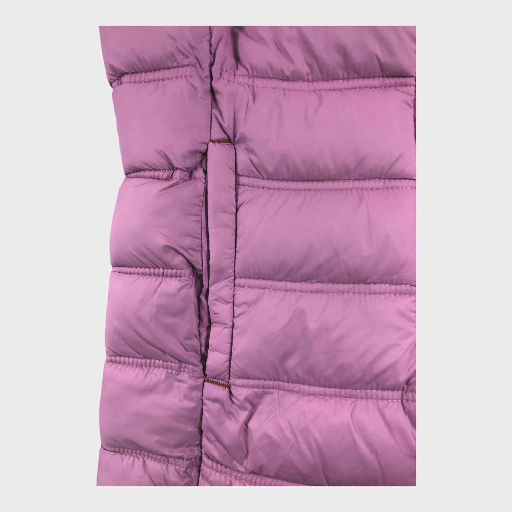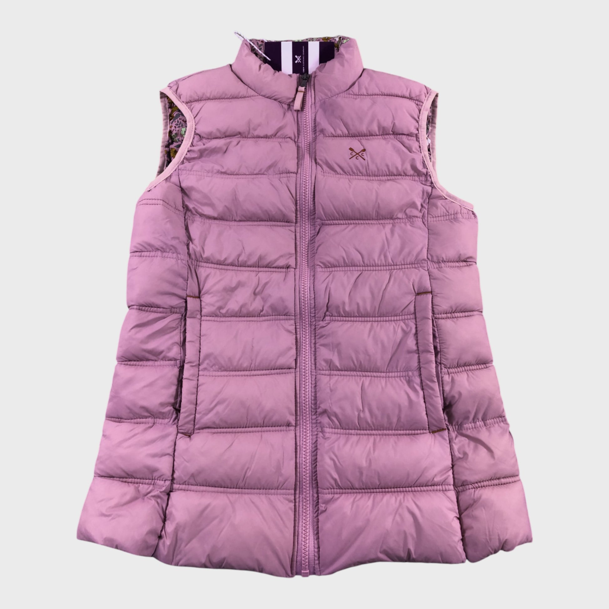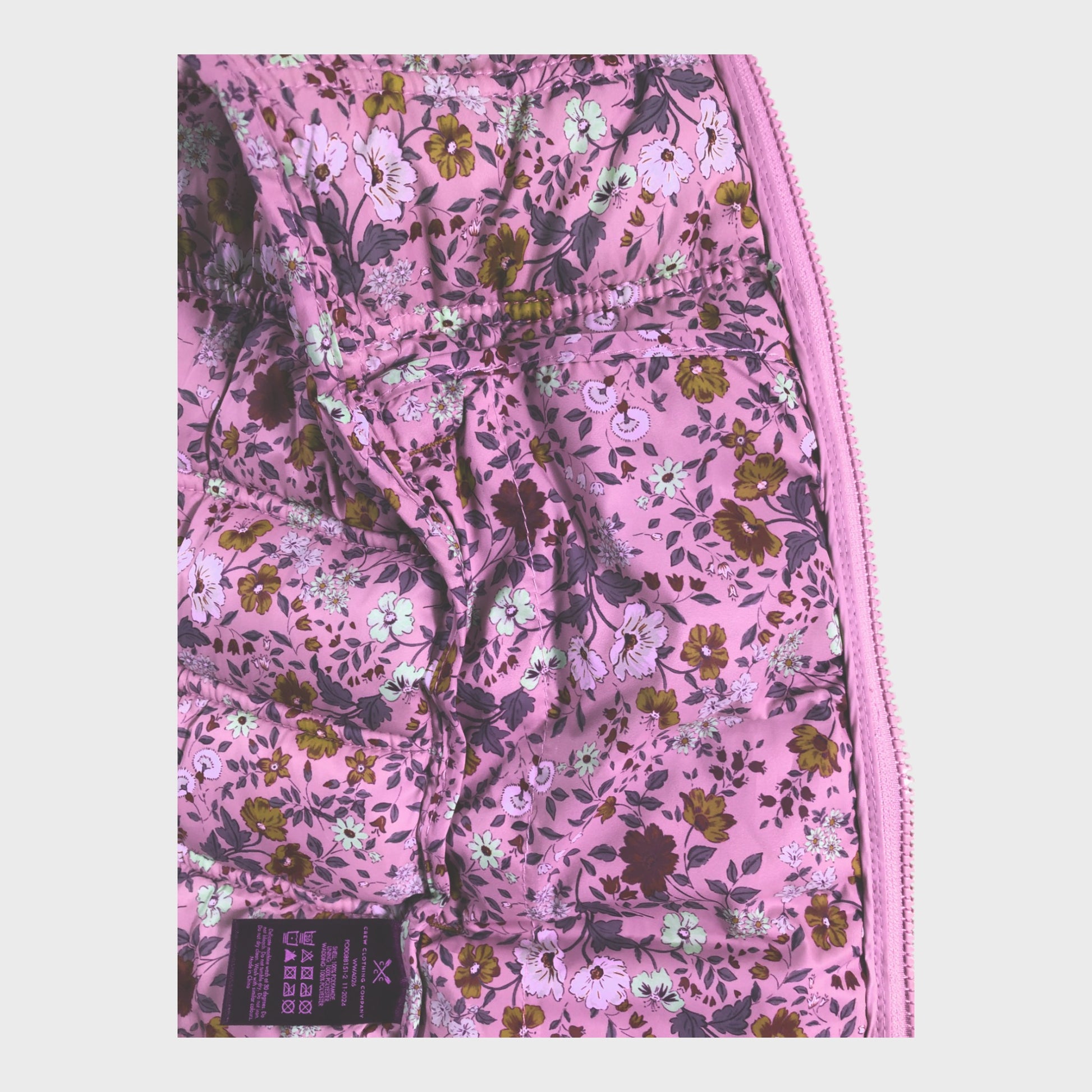 Mauve lightweight gilet lined with a ditsy floral print, with padding for warmth, side pockets and full zip closure.