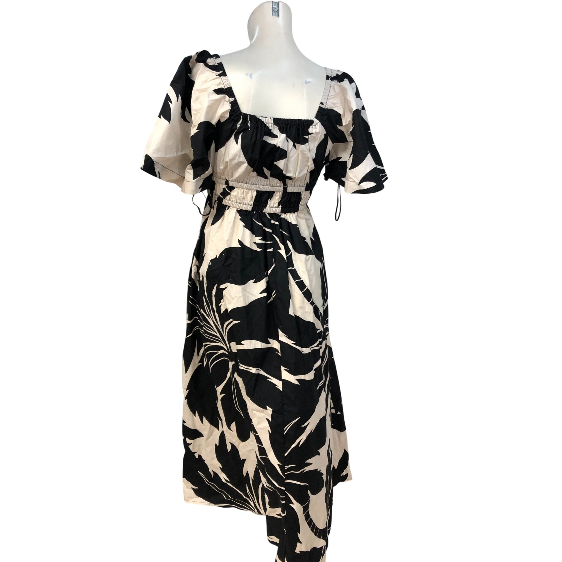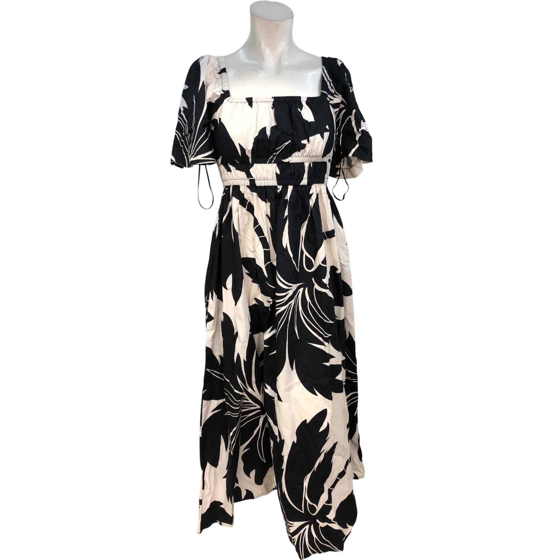 Dark Tropics Leaf Print Maxi Dress UK8 Women's Cotton Black Cream Party