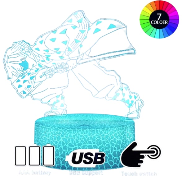 Demon Slayer 3D Lamp Illusion Touch Switch Colour Changing LED Nightlight